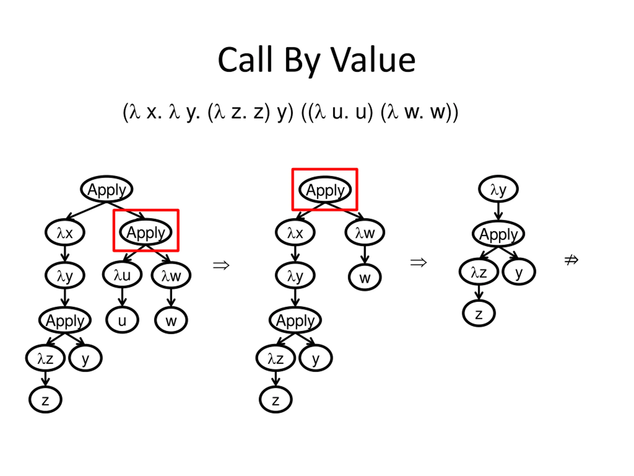 Call By Value ( x. y. ( z. z) y) (( u. u) ( w. w)) y Apply Apply x w x Apply Apply z y u y y w w z u Apply Apply w z z y y z z