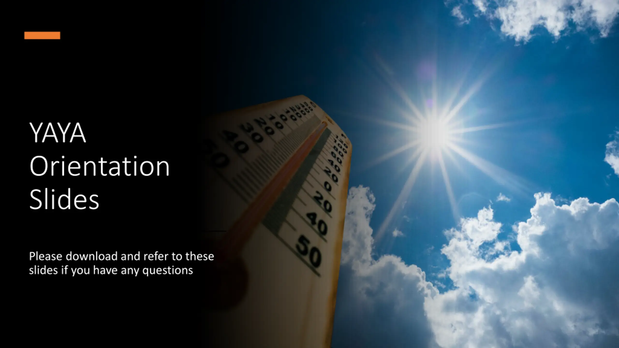 YAYA Orientation Slides Please download and refer to these slides if you have any questions