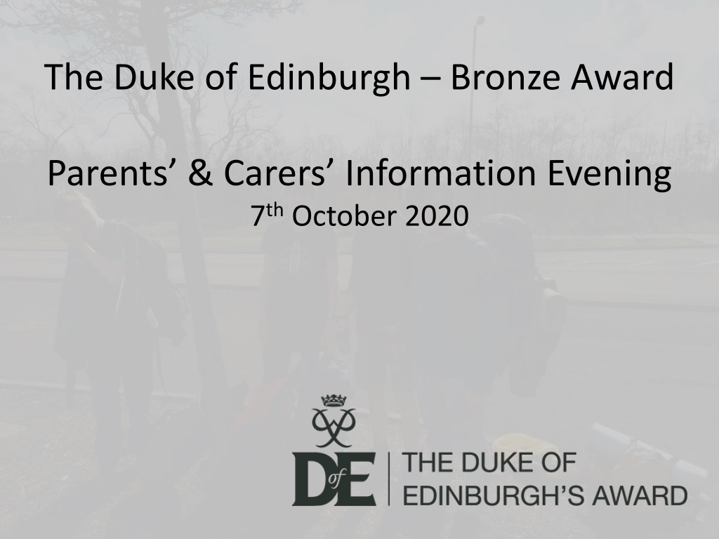 The Duke of Edinburgh Bronze Award Parents & Carers Information Evening 7thOctober 2020