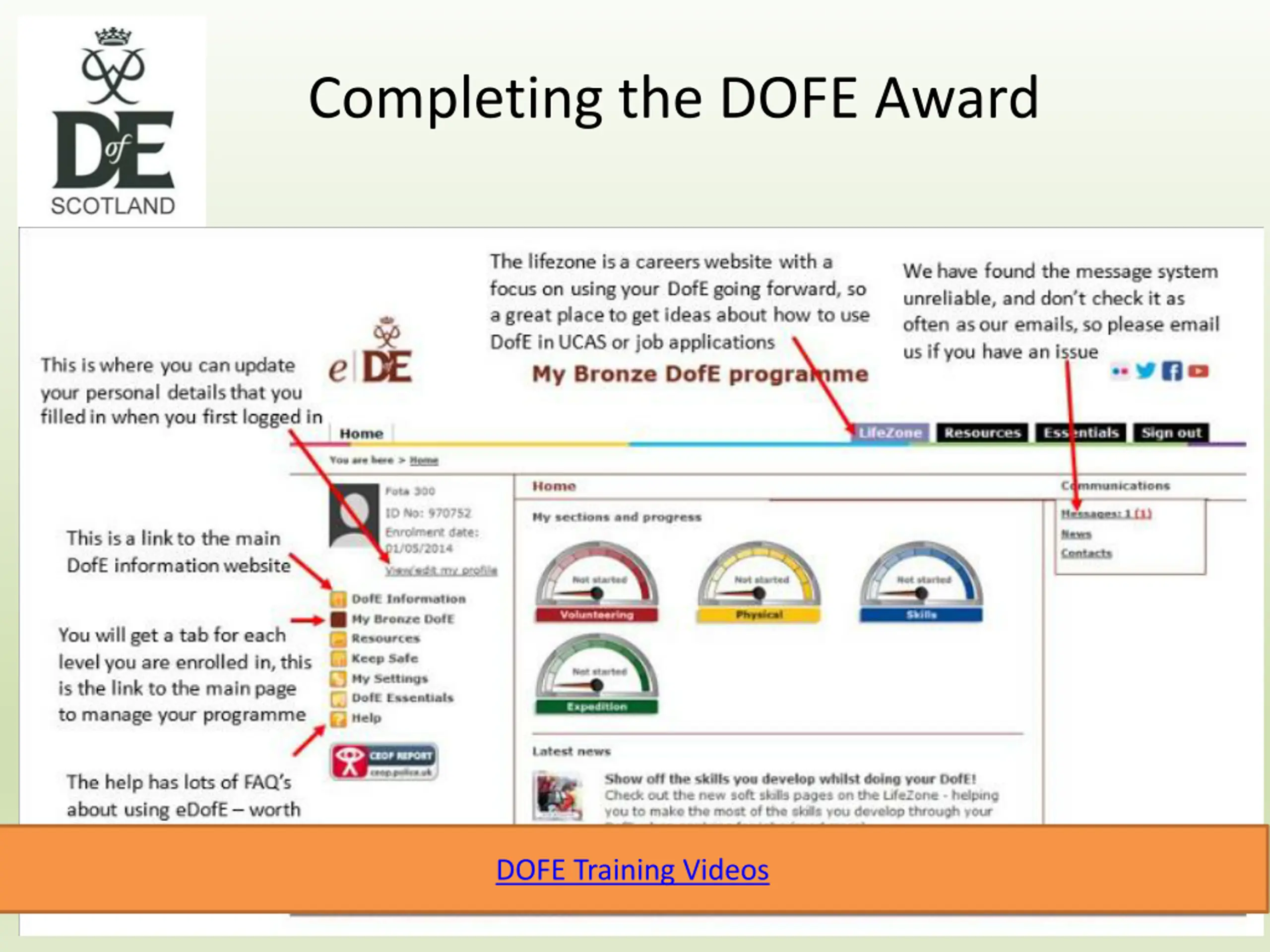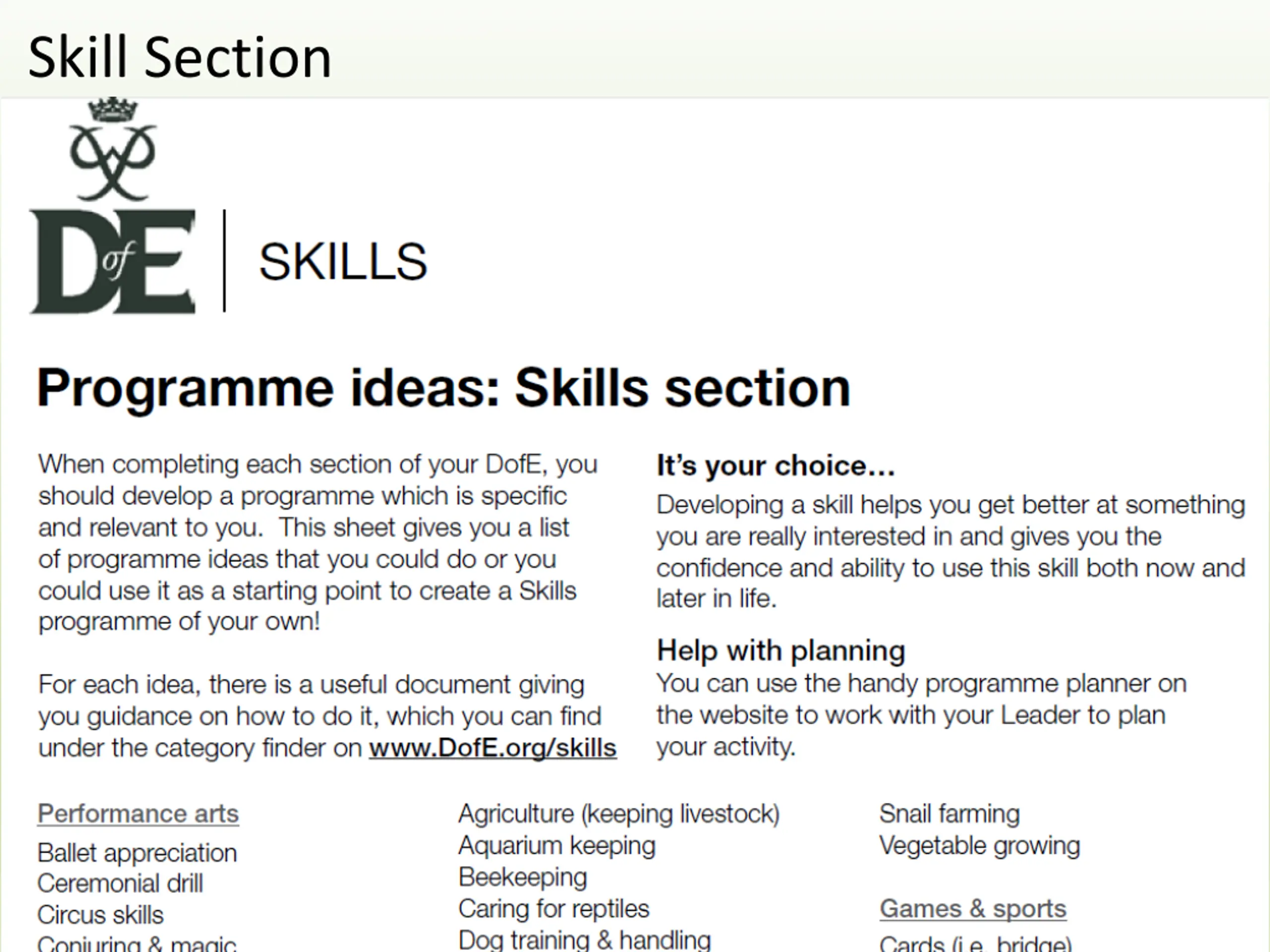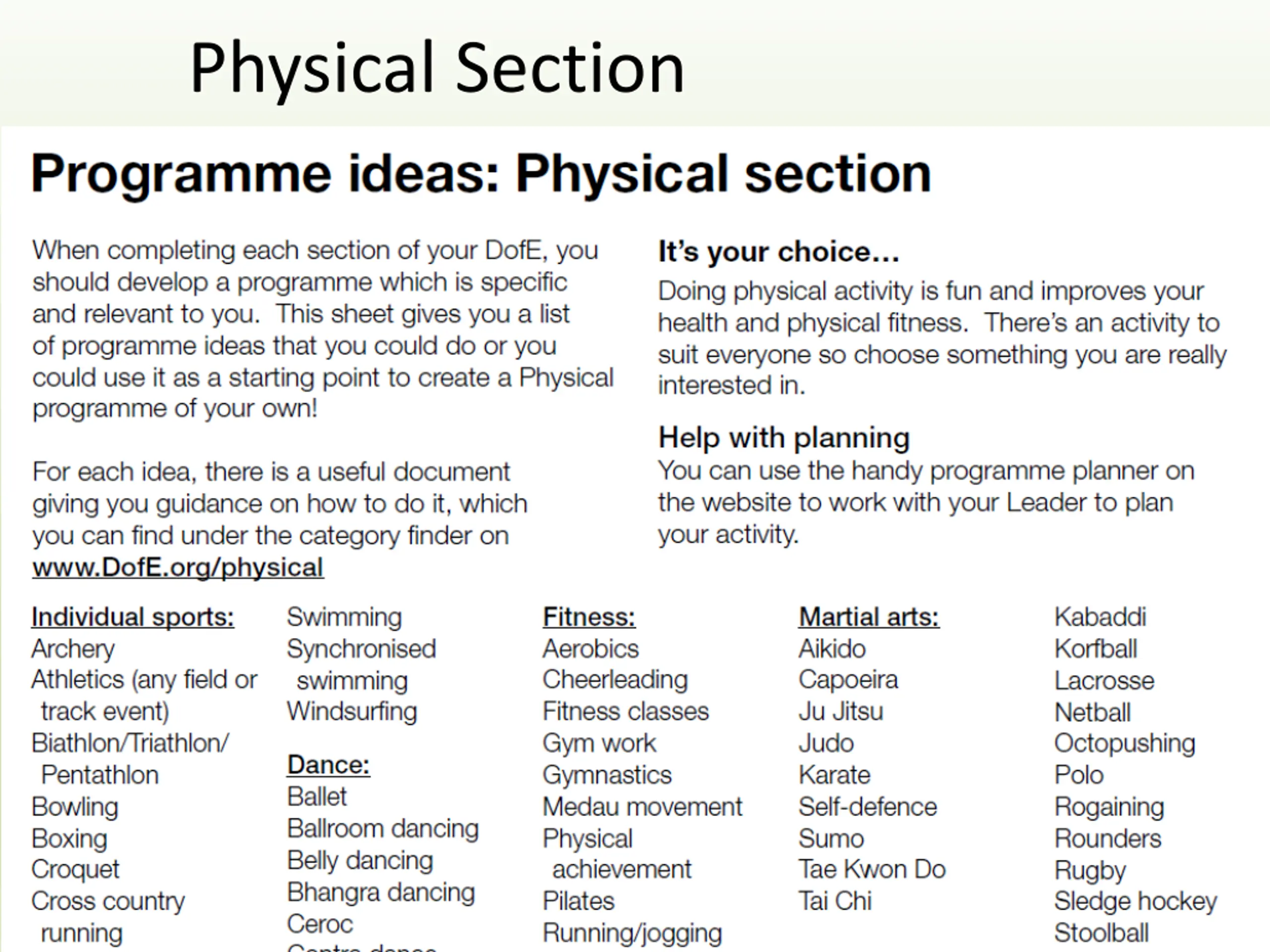 DOFE - 4 sections: Skill: Developing practical and social skills and personal interests Volunteering: undertaking service to individual or community Physical Activity: improving in an area of sport, dance or physical activity Expedition: planning, training and completing an adventurous journey Top Tip: Try and undertake activities that you are already involved with.