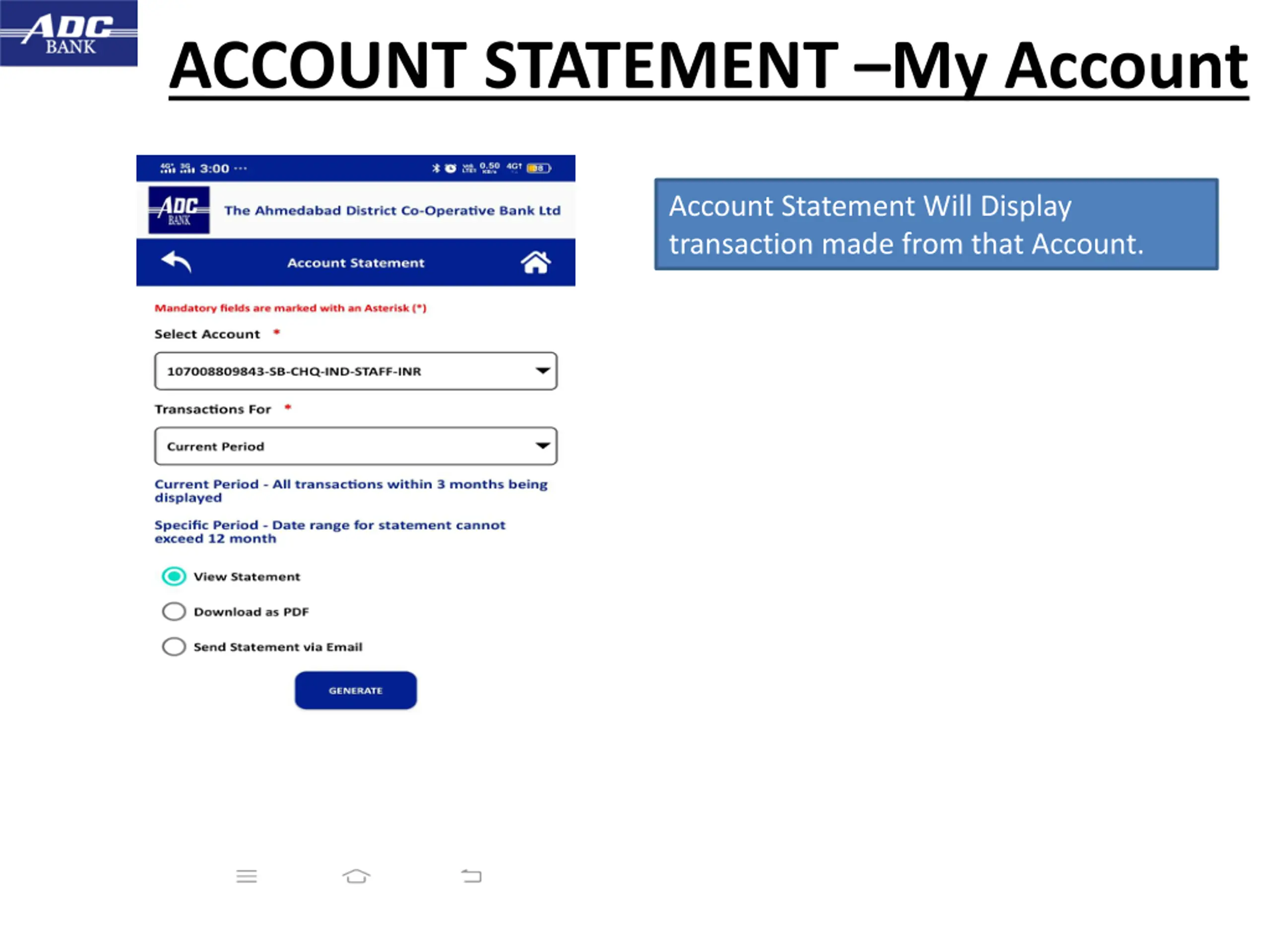 ACCOUNT STATEMENT My Account Account Statement Will Display transaction made from that Account.
