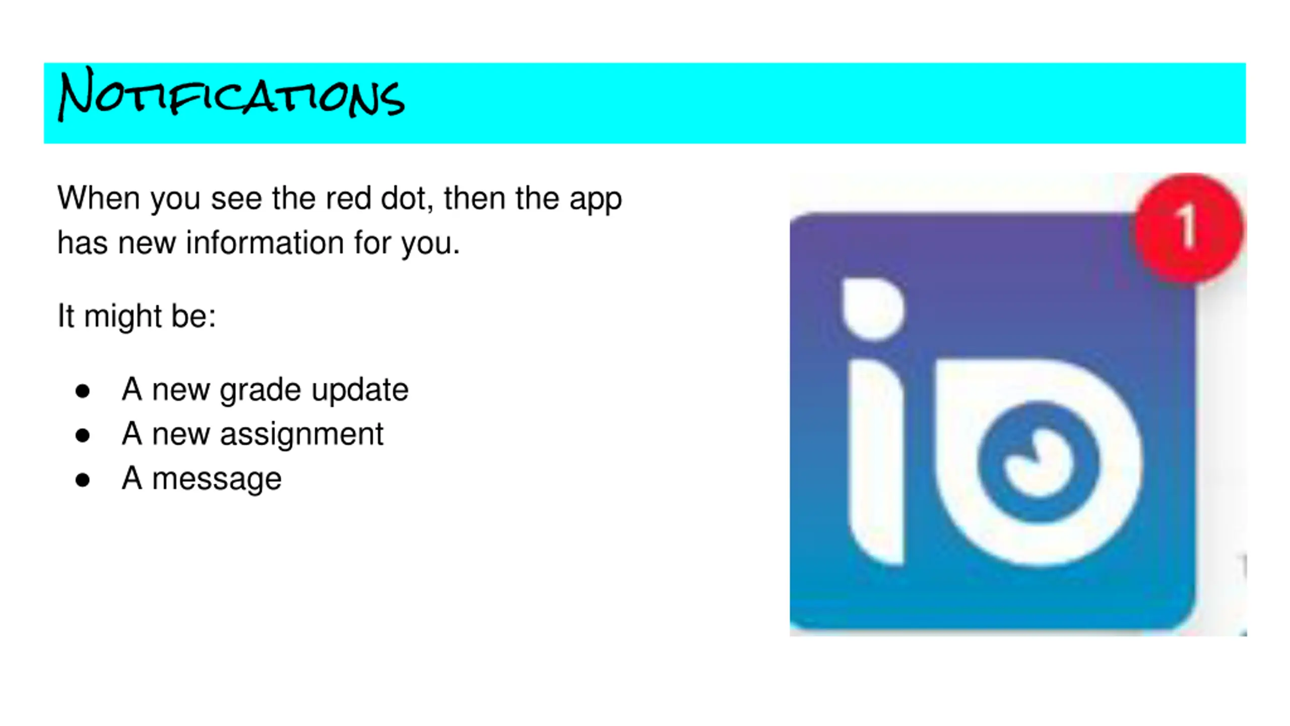 Notifications When you see the red dot, then the app has new information for you. It might be: A new grade update A new assignment A message
