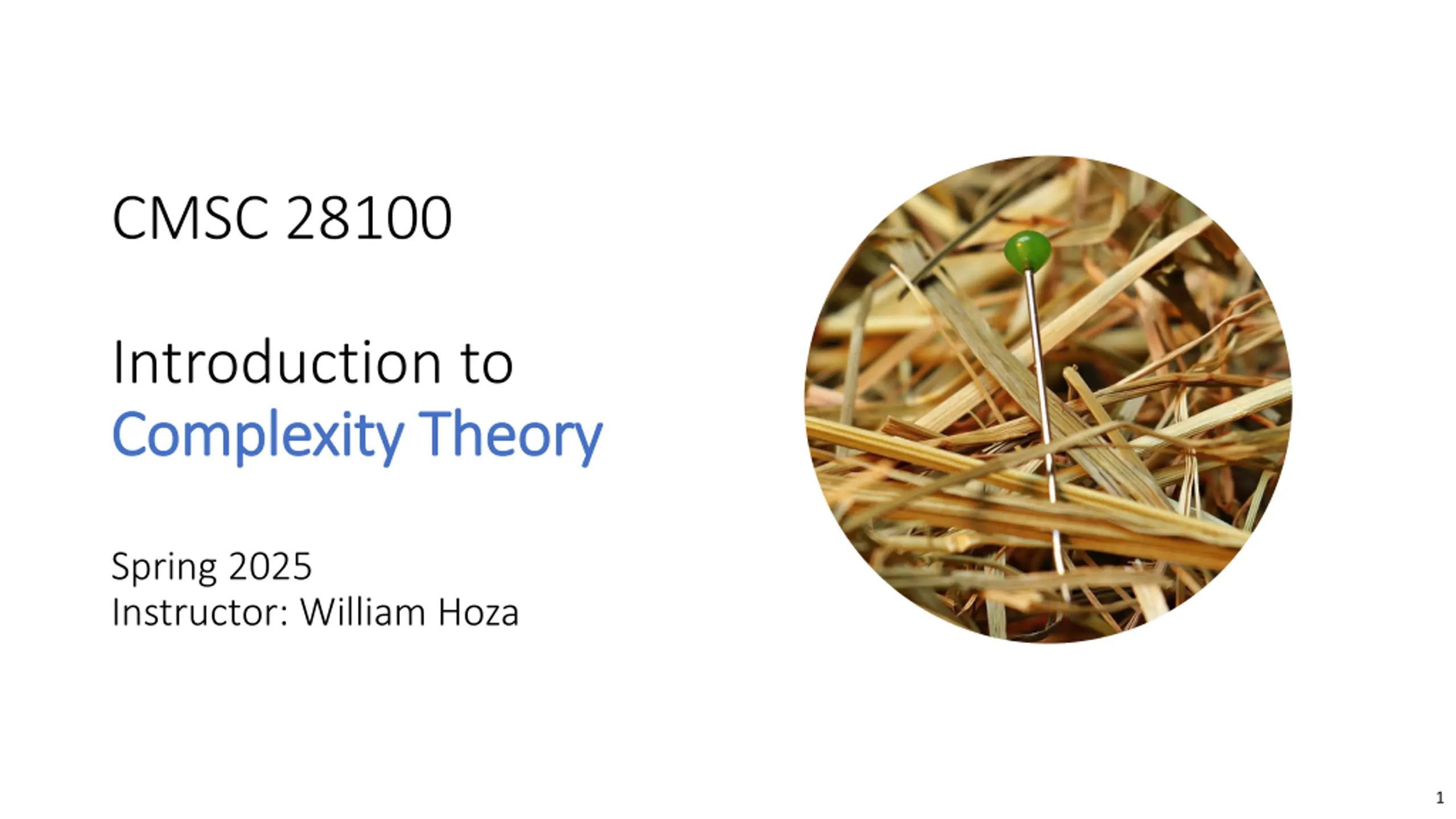 CMSC 28100 Introduction to Complexity Theory Complexity Theory Spring 2025 Instructor: William Hoza 1
