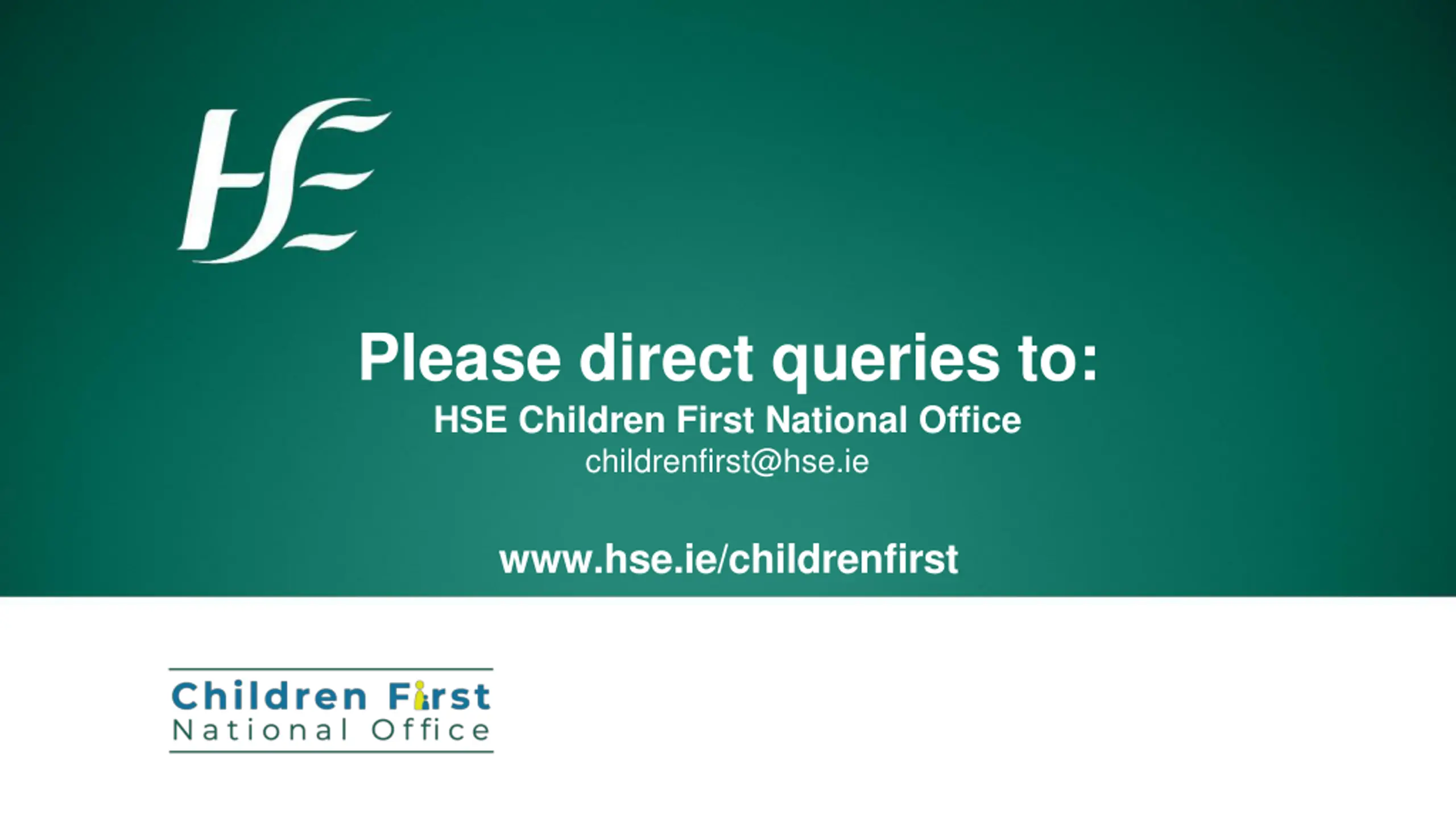 Please direct queries to: HSE Children First National Office childrenfirst@hse.ie www.hse.ie/childrenfirst