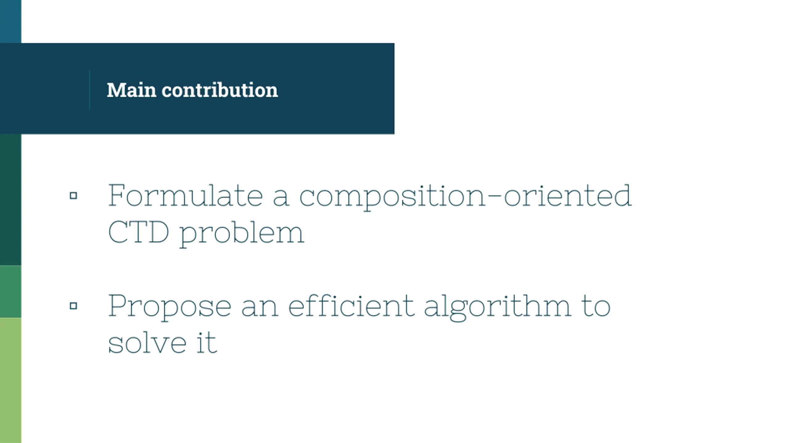 Main contribution Formulate a composition-oriented CTD problem Propose an efficient algorithm to solve it