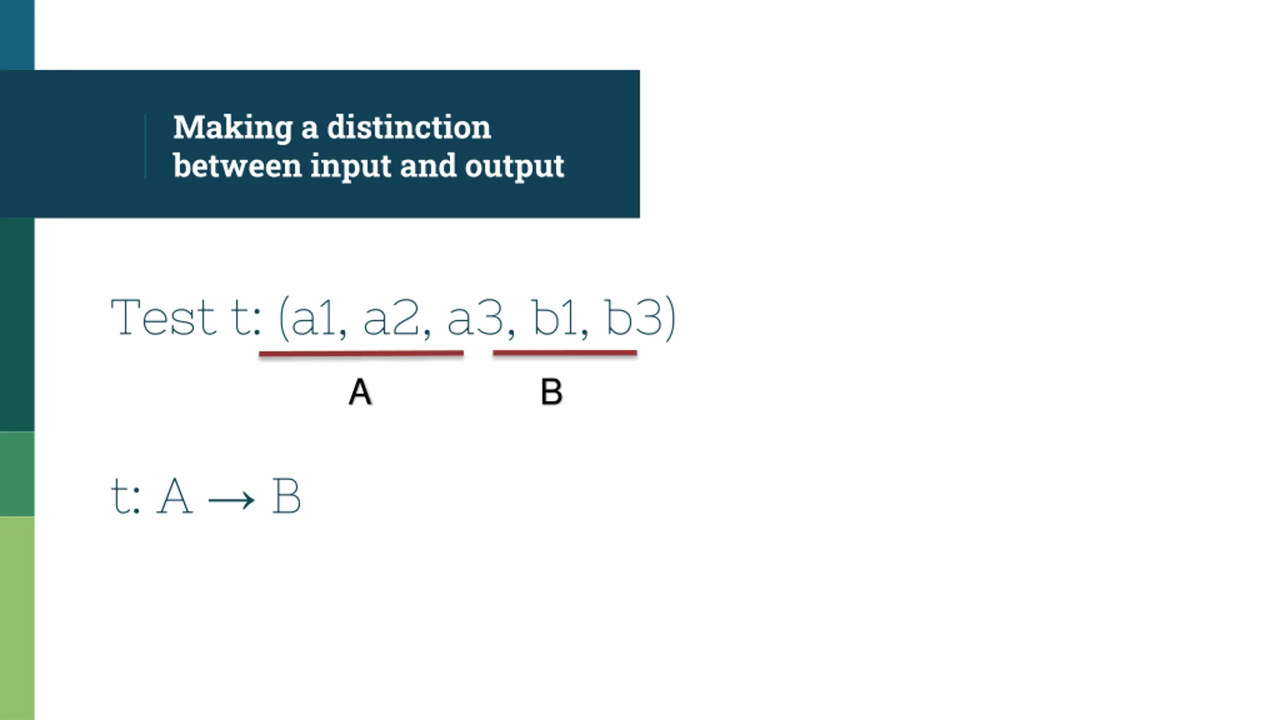 Making a distinction between input and output Test t: (a1, a2, a3, b1, b3) A B t: A B
