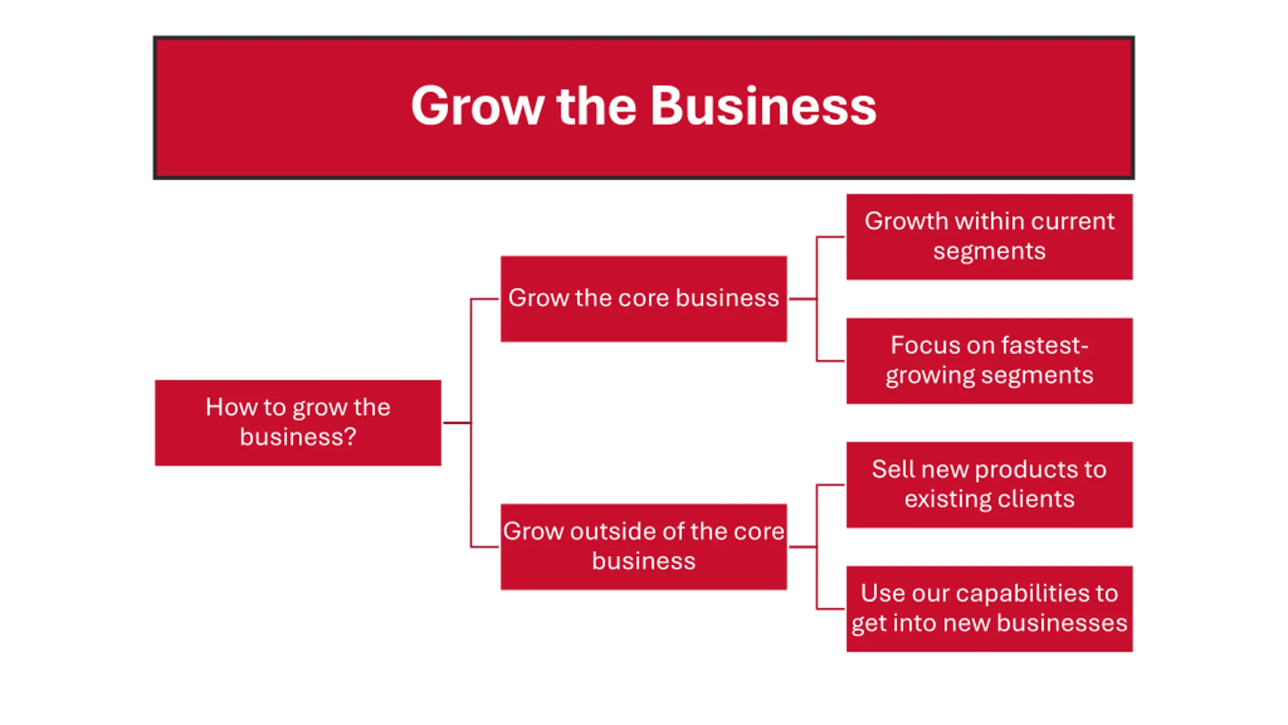 Grow the Business Growth within current segments Grow the core business Focus on fastest- growing segments How to grow the business? Sell new products to existing clients Grow outside of the core business Use our capabilities to get into new businesses