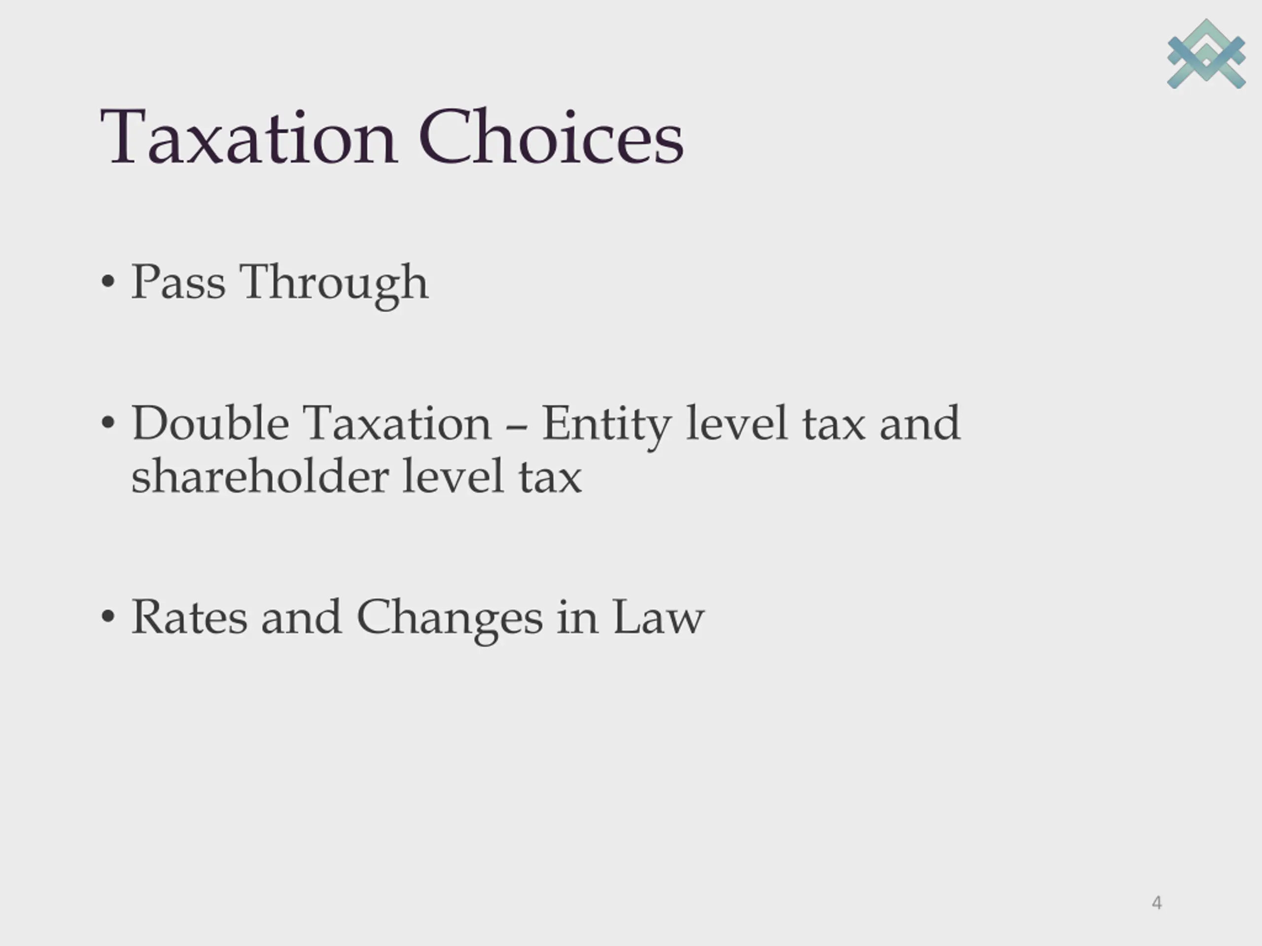 Taxation Choices Pass Through Double Taxation Entity level tax and shareholder level tax Rates and Changes in Law 4