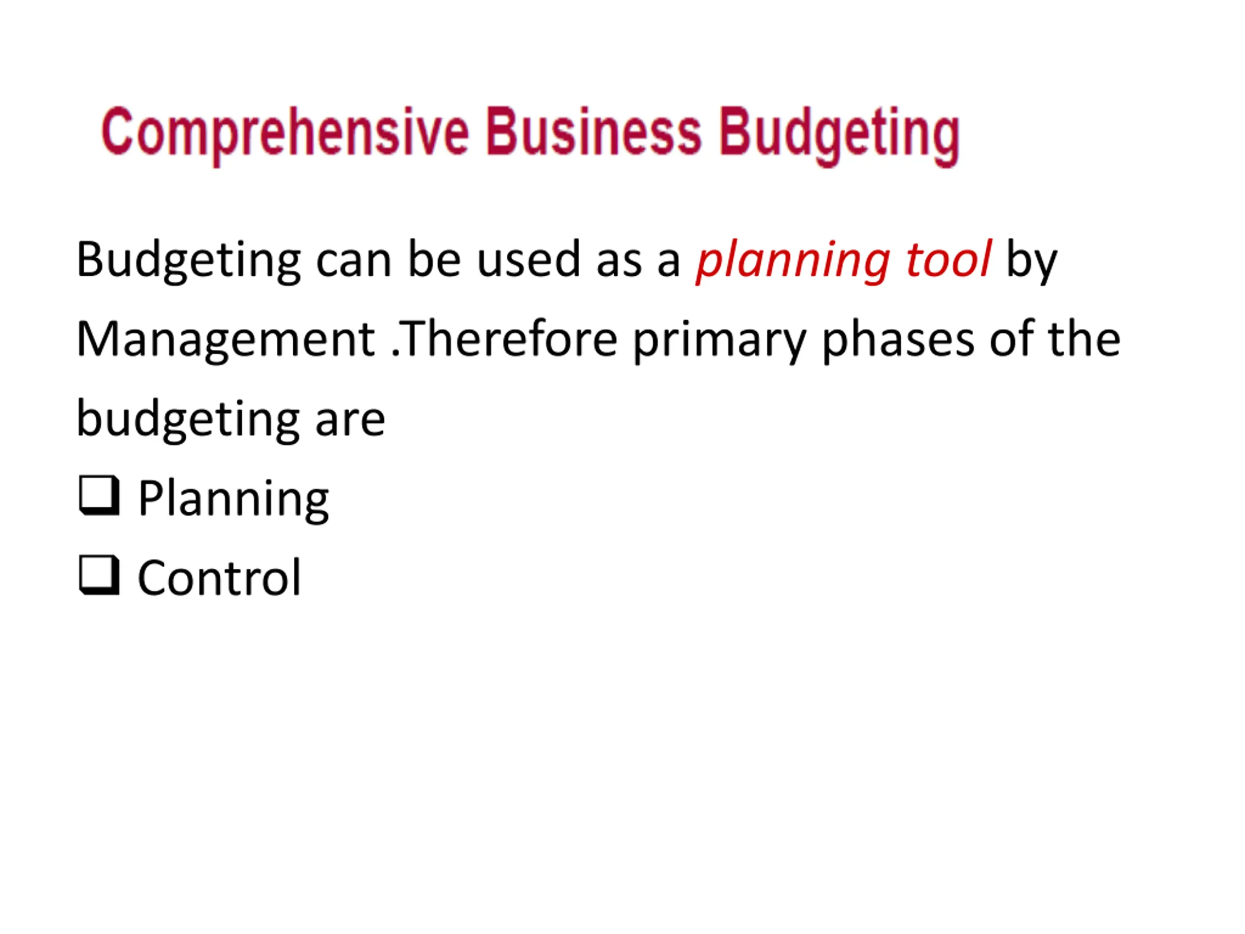 Budgeting can be used as a planning tool by Management .Therefore primary phases of the budgeting are Planning Control