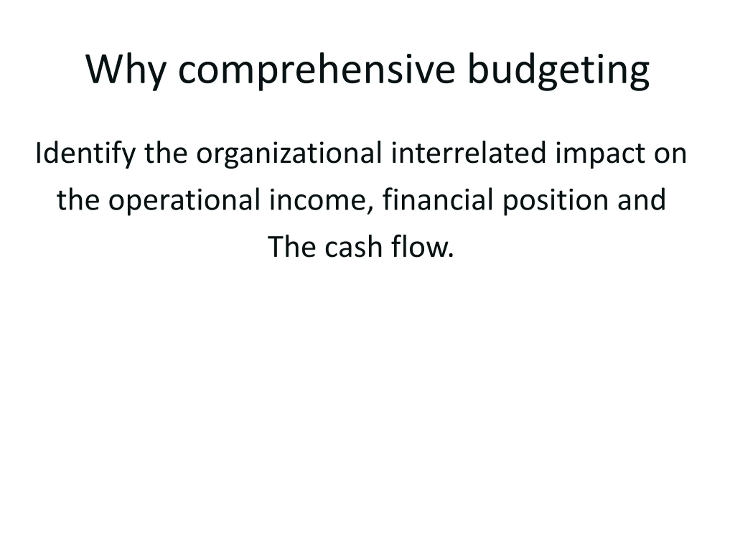 Why comprehensive budgeting Identify the organizational interrelated impact on the operational income, financial position and The cash flow.