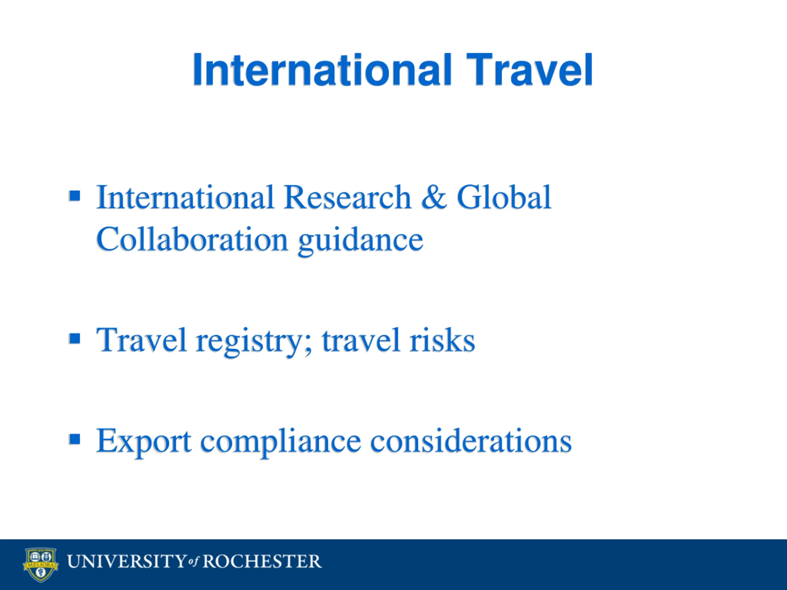 International Travel International Research & Global Collaboration guidance Travel registry; travel risks Export compliance considerations