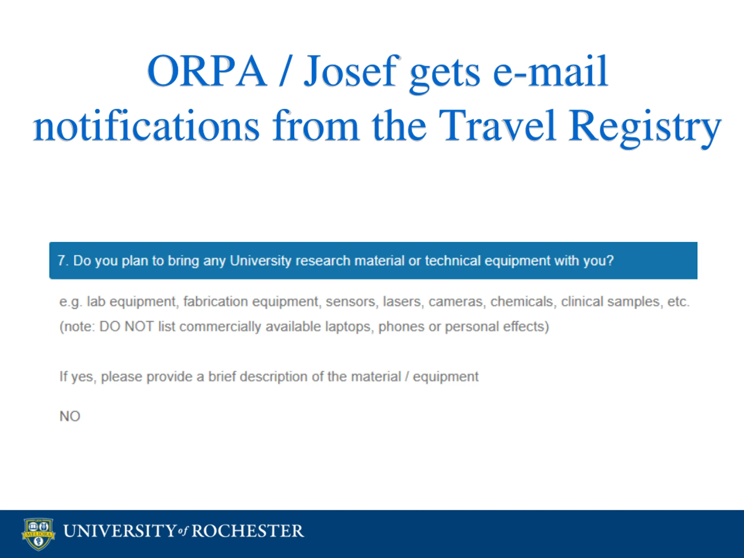 ORPA / Josef gets e-mail notifications from the Travel Registry