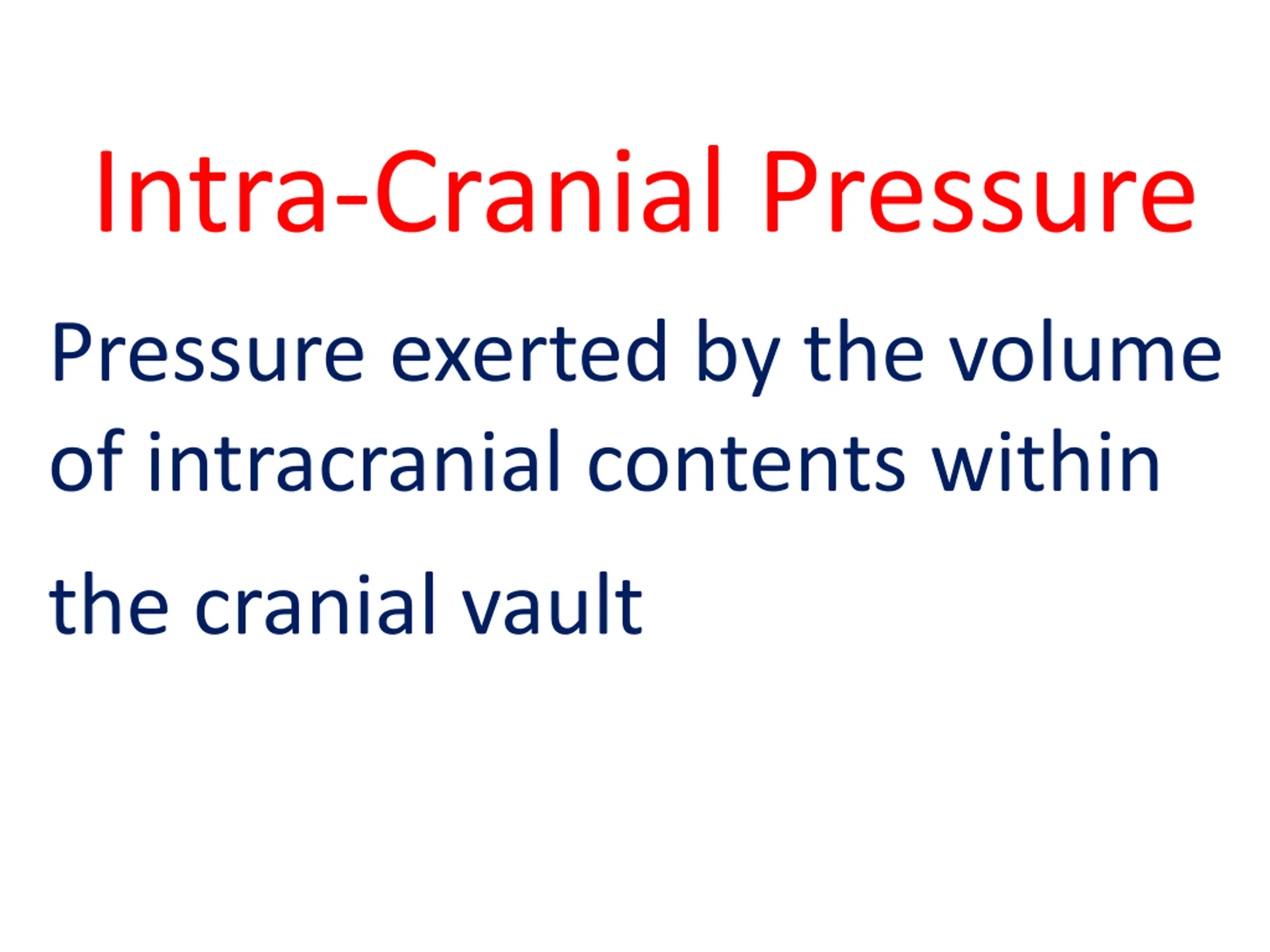 Intra-Cranial Pressure Pressure exerted by the volume of intracranial contents within the cranial vault
