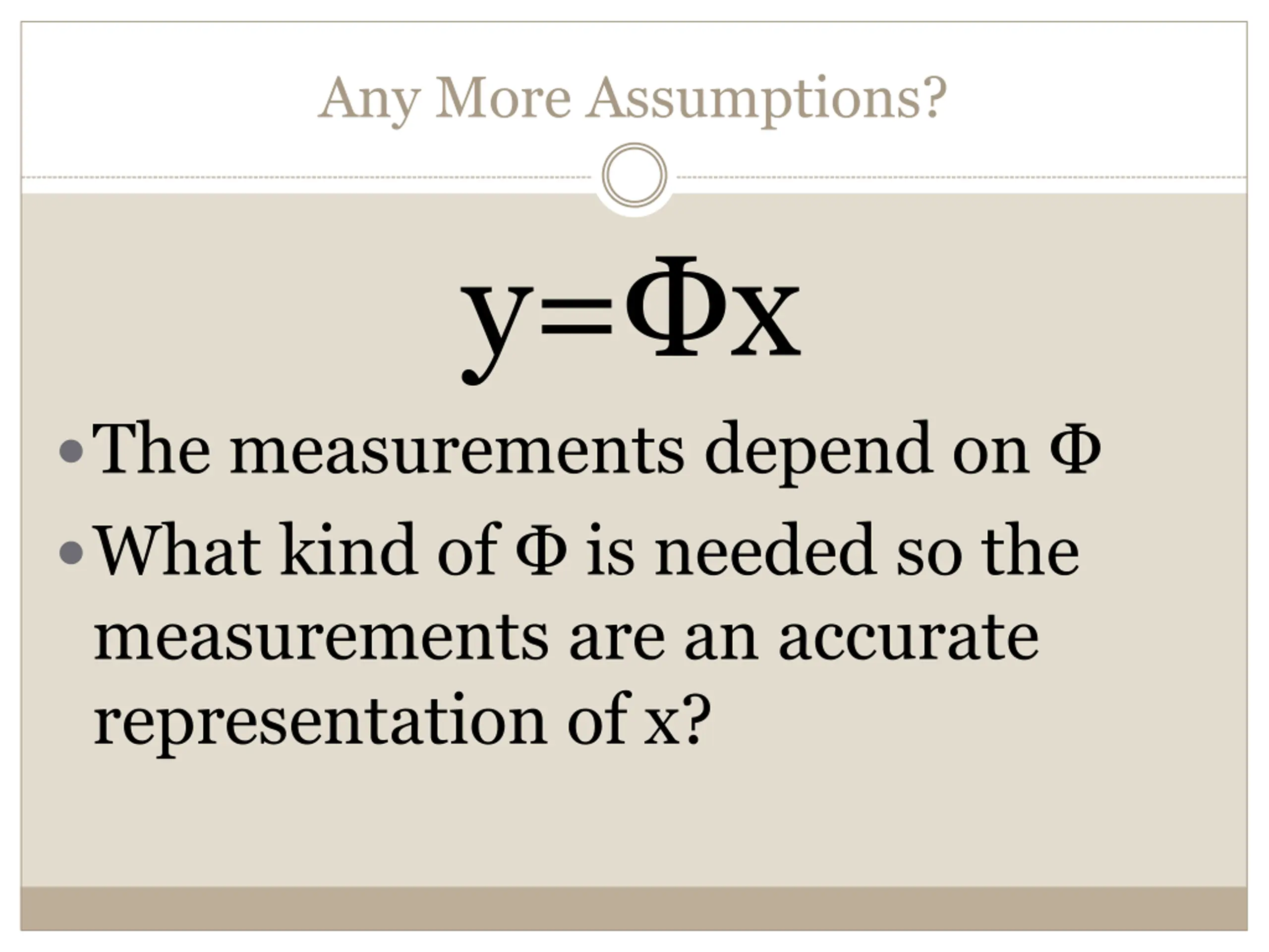 Any More Assumptions? y= x The measurements depend on What kind of is needed so the measurements are an accurate representation of x?