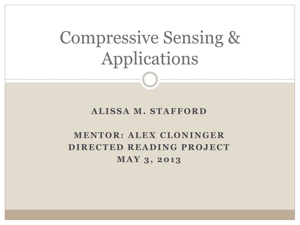 Compressive Sensing & Applications ALISSA M. STAFFORD MENTOR: ALEX CLONINGER DIRECTED READING PROJECT MAY 3, 2013
