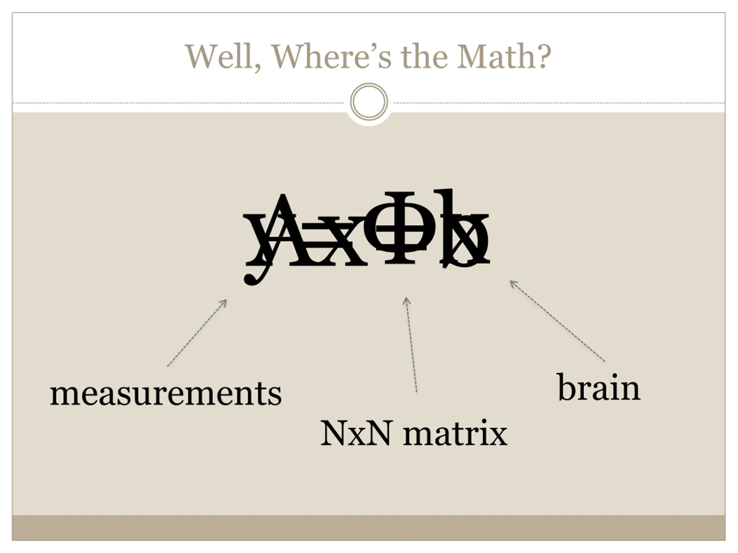 Well, Wheres the Math? Ax=b y= x brain measurements NxN matrix