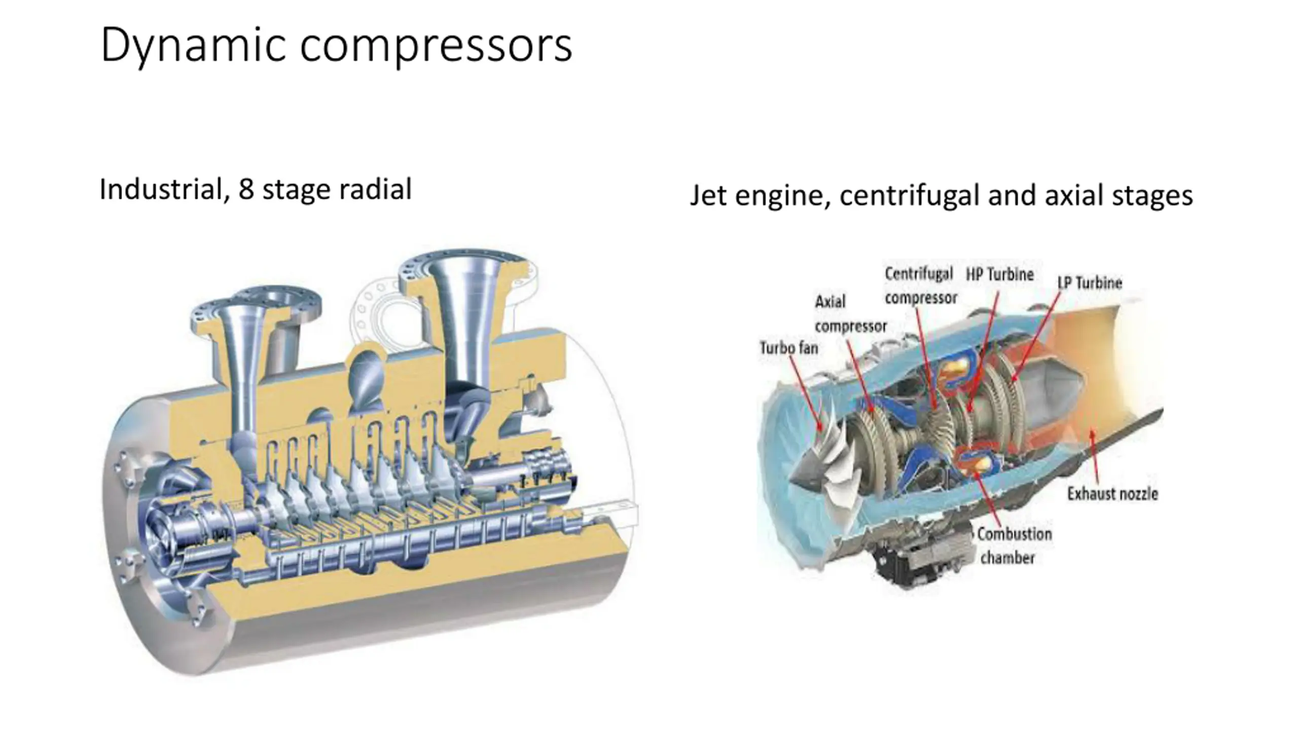 Dynamic compressors Industrial, 8 stage radial Jet engine, centrifugal and axial stages
