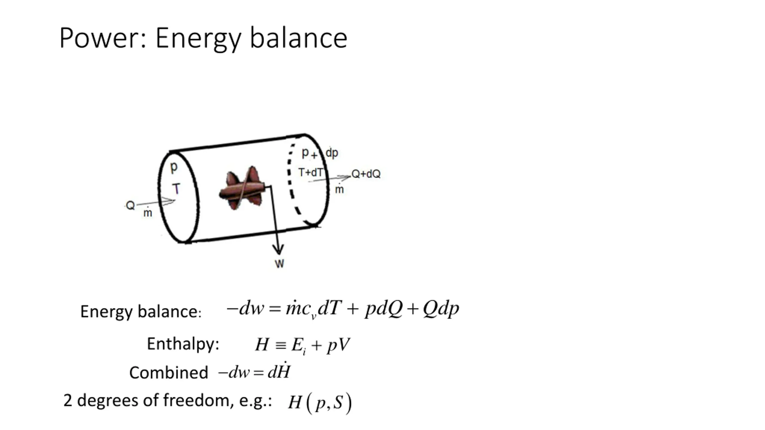 Power: Energy balance = + pdQ Qdp + dw mc dT Energy balance: v + H = E pV Enthalpy: i dw dH Combined ( ) , H p S 2 degrees of freedom, e.g.: