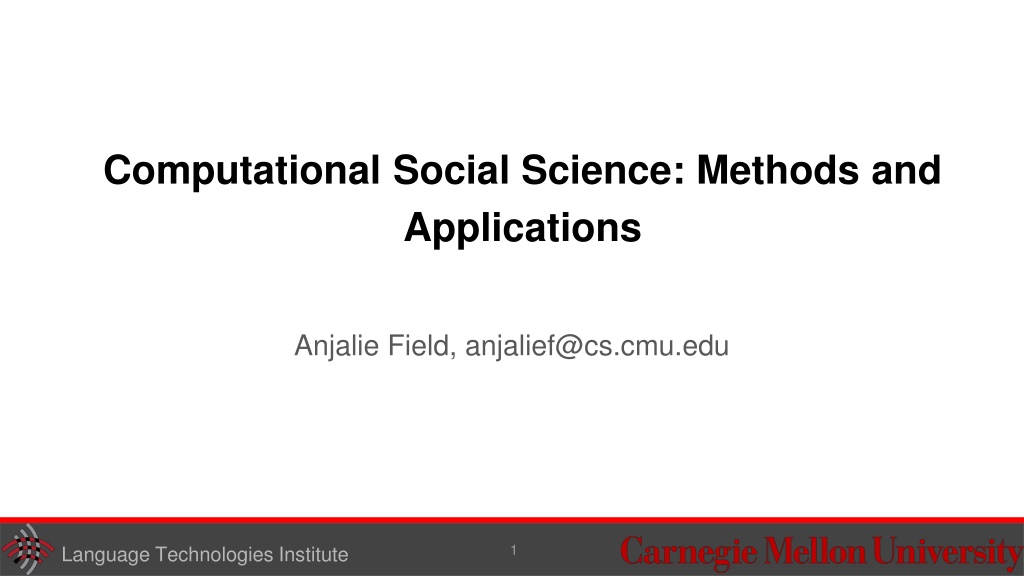 Computational Social Science: Methods and Applications Anjalie Field, anjalief@cs.cmu.edu 1 Language Technologies Institute
