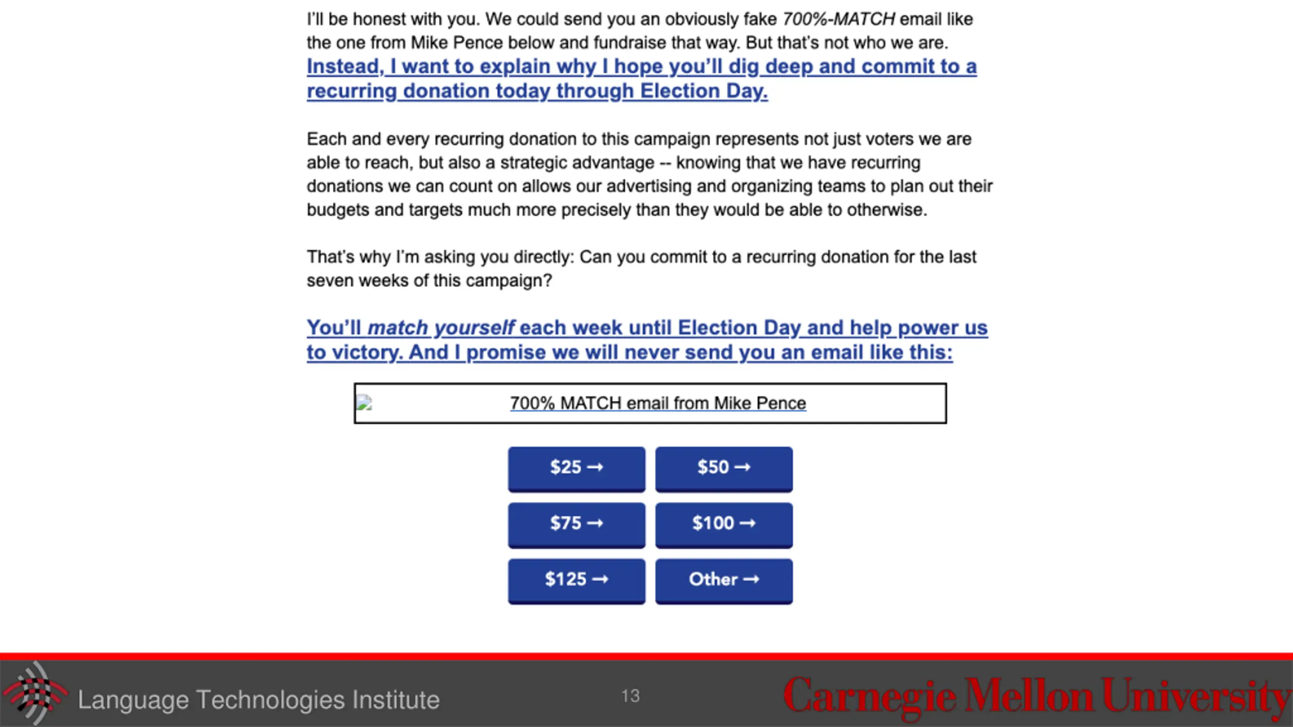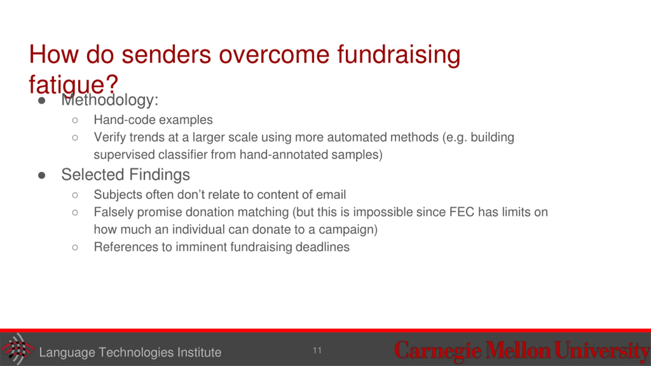 How do senders overcome fundraising fatigue? 12 Language Technologies Institute 12