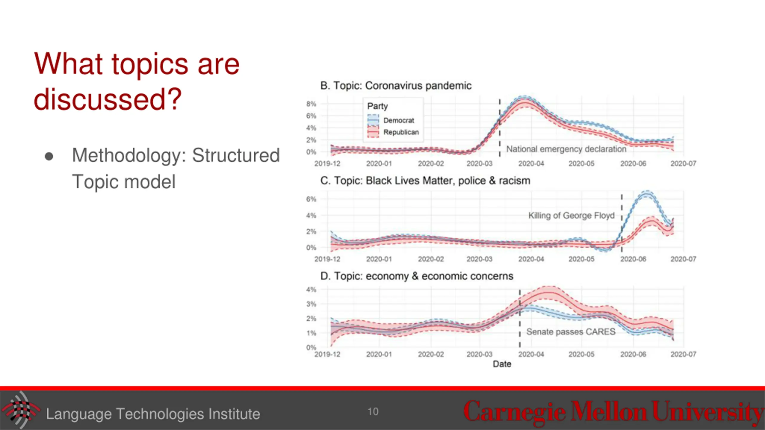 What topics are discussed? Methodology: Structured Topic model 10 Language Technologies Institute 10