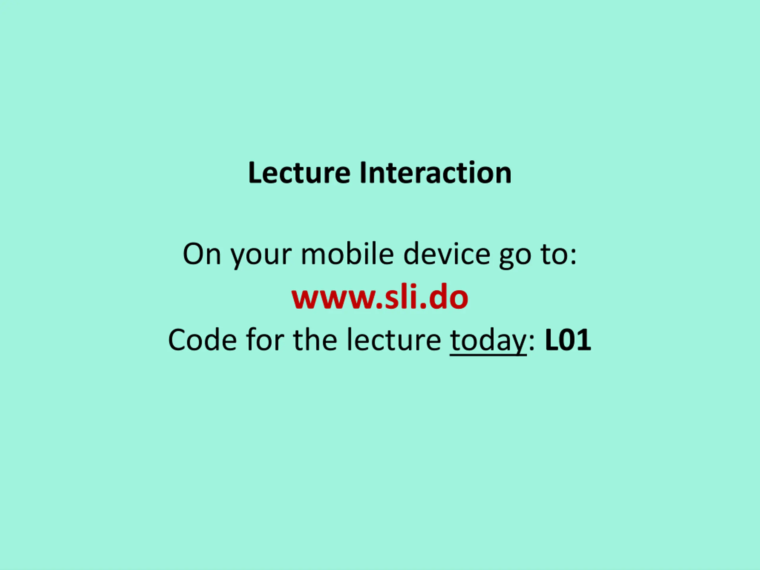 Lecture Interaction On your mobile device go to: www.sli.do Code for the lecture today: L01
