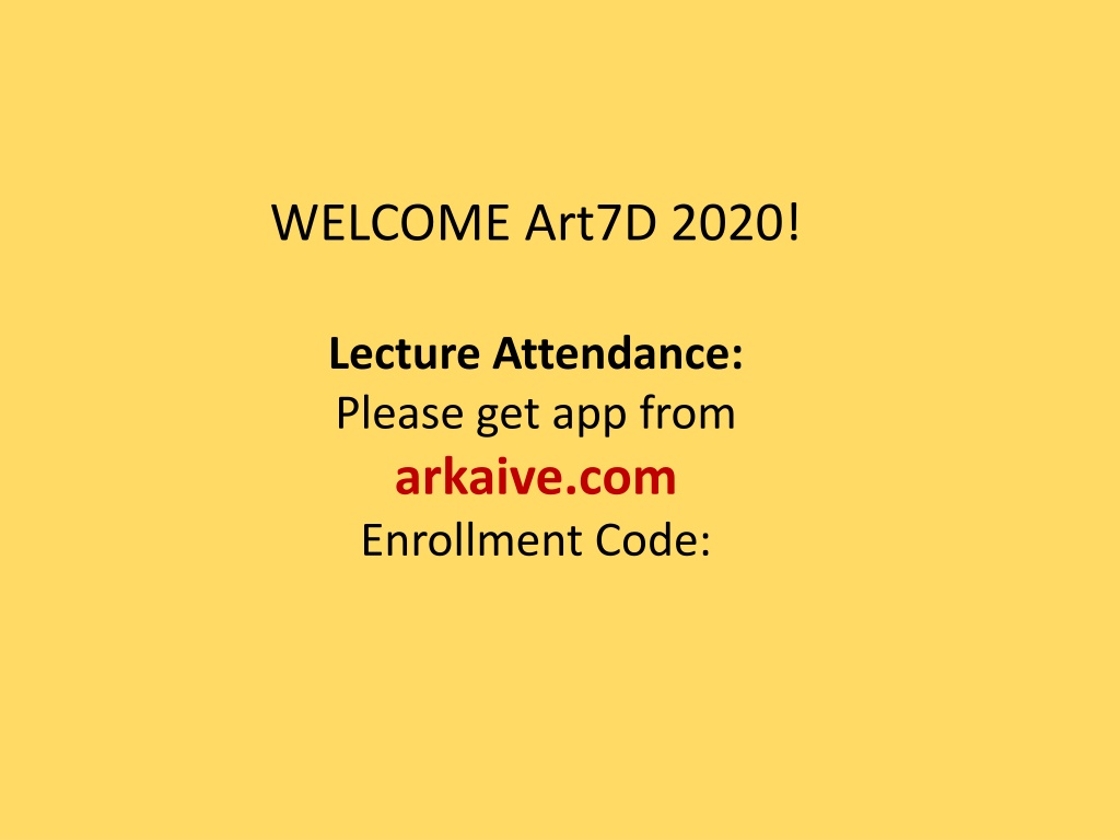 WELCOME Art7D 2020! Lecture Attendance: Please get app from arkaive.com Enrollment Code: