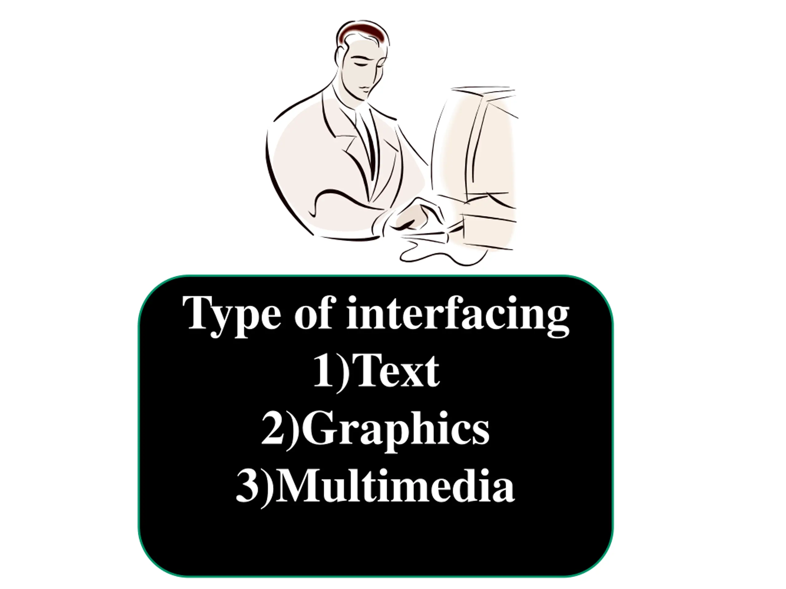 Type of interfacing 1)Text 2)Graphics 3)Multimedia
