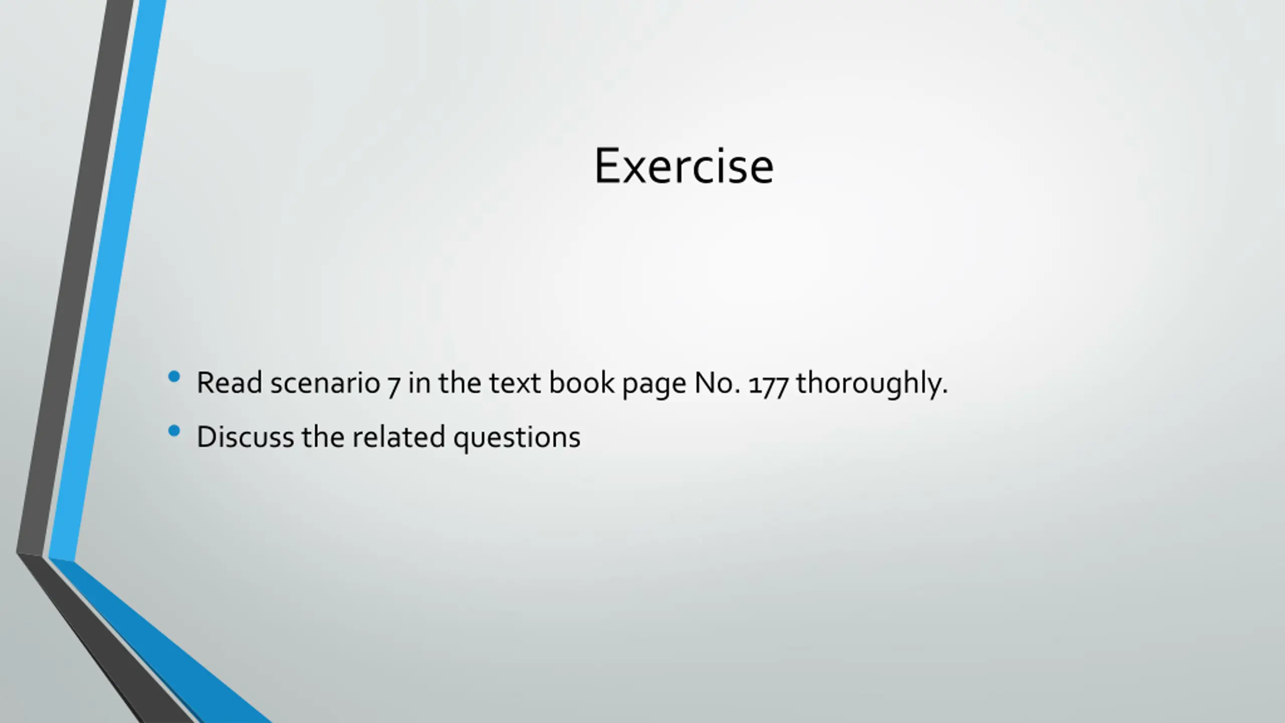 Exercise Read scenario 7 in the text book page No. 177 thoroughly. Discuss the related questions