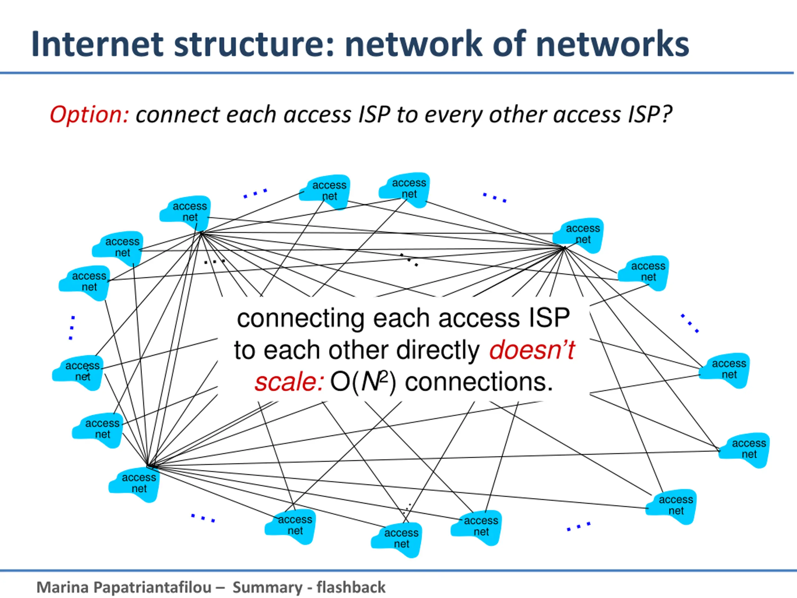 Internet structure: network of networks Option: connect each access ISP to every other access ISP? access net access net access net access net access net access net access net connecting each access ISP to each other directly doesn t scale: O(N2) connections. access net access net access net access net access net access net access net access net access net Marina Papatriantafilou Summary - flashback