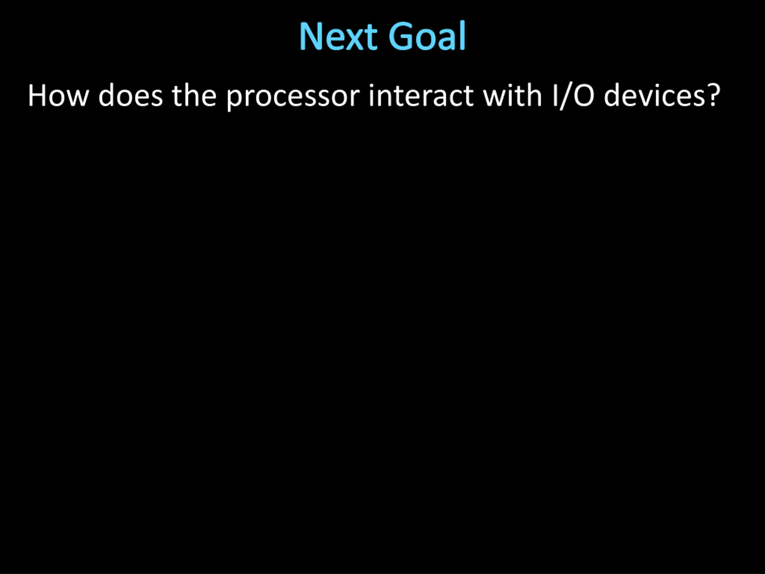 Next Goal How does the processor interact with I/O devices?