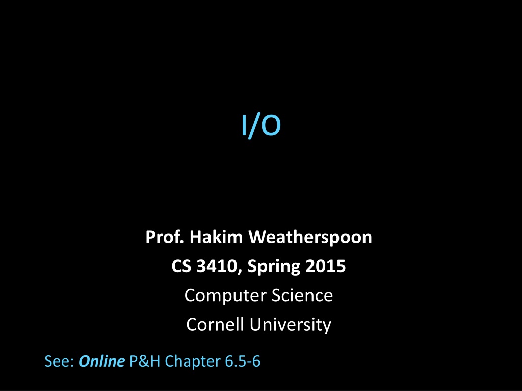 I/O Prof. Hakim Weatherspoon CS 3410, Spring 2015 Computer Science Cornell University See: Online P&H Chapter 6.5-6