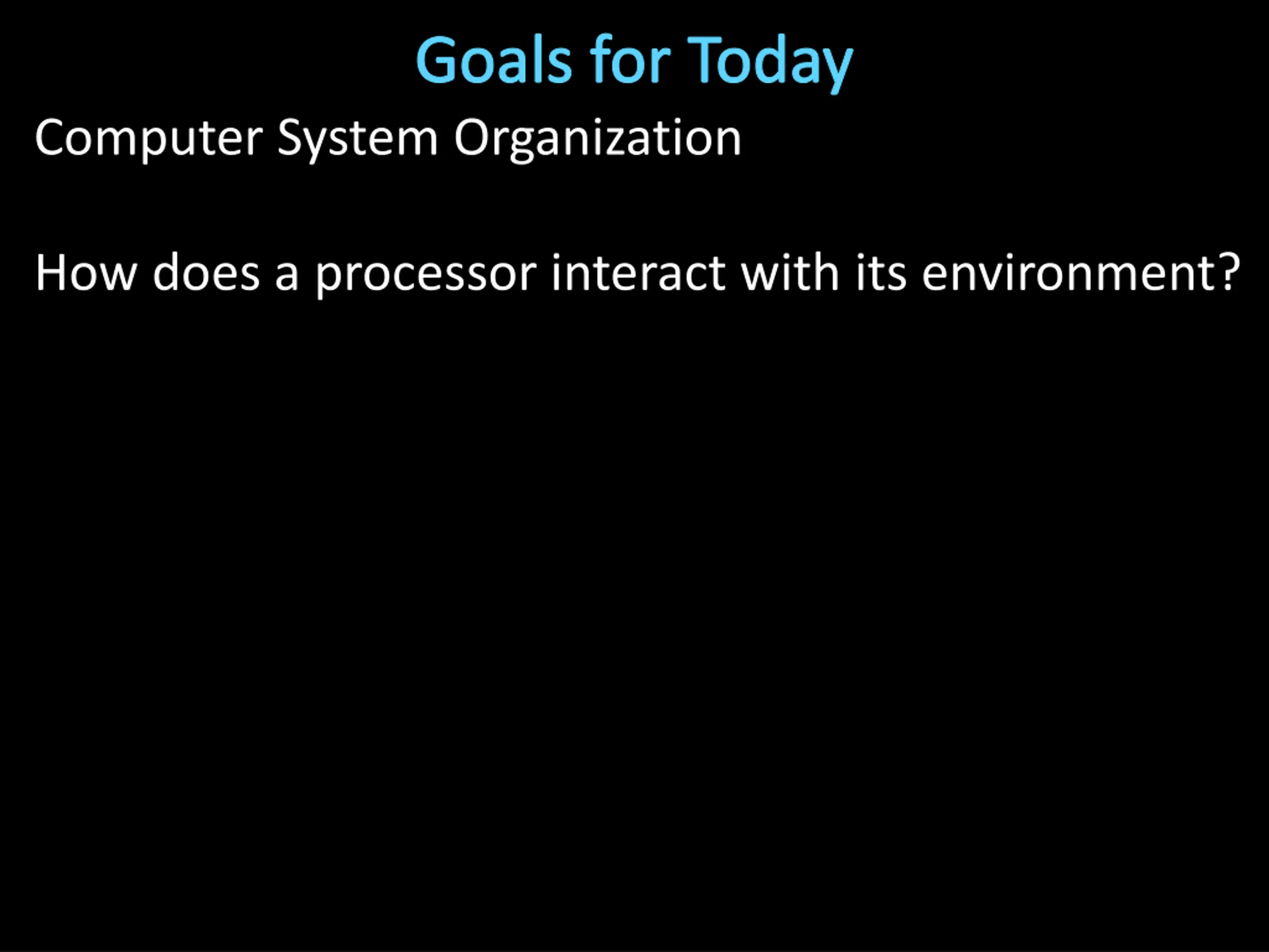 Goals for Today Computer System Organization How does a processor interact with its environment?