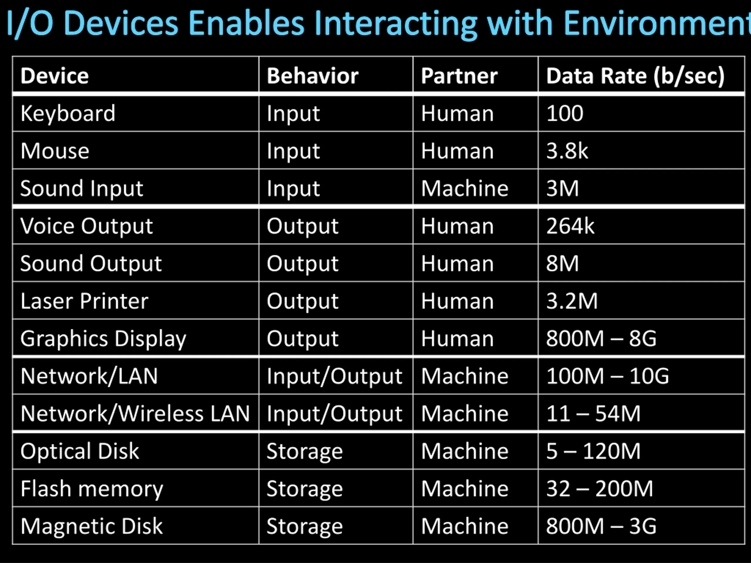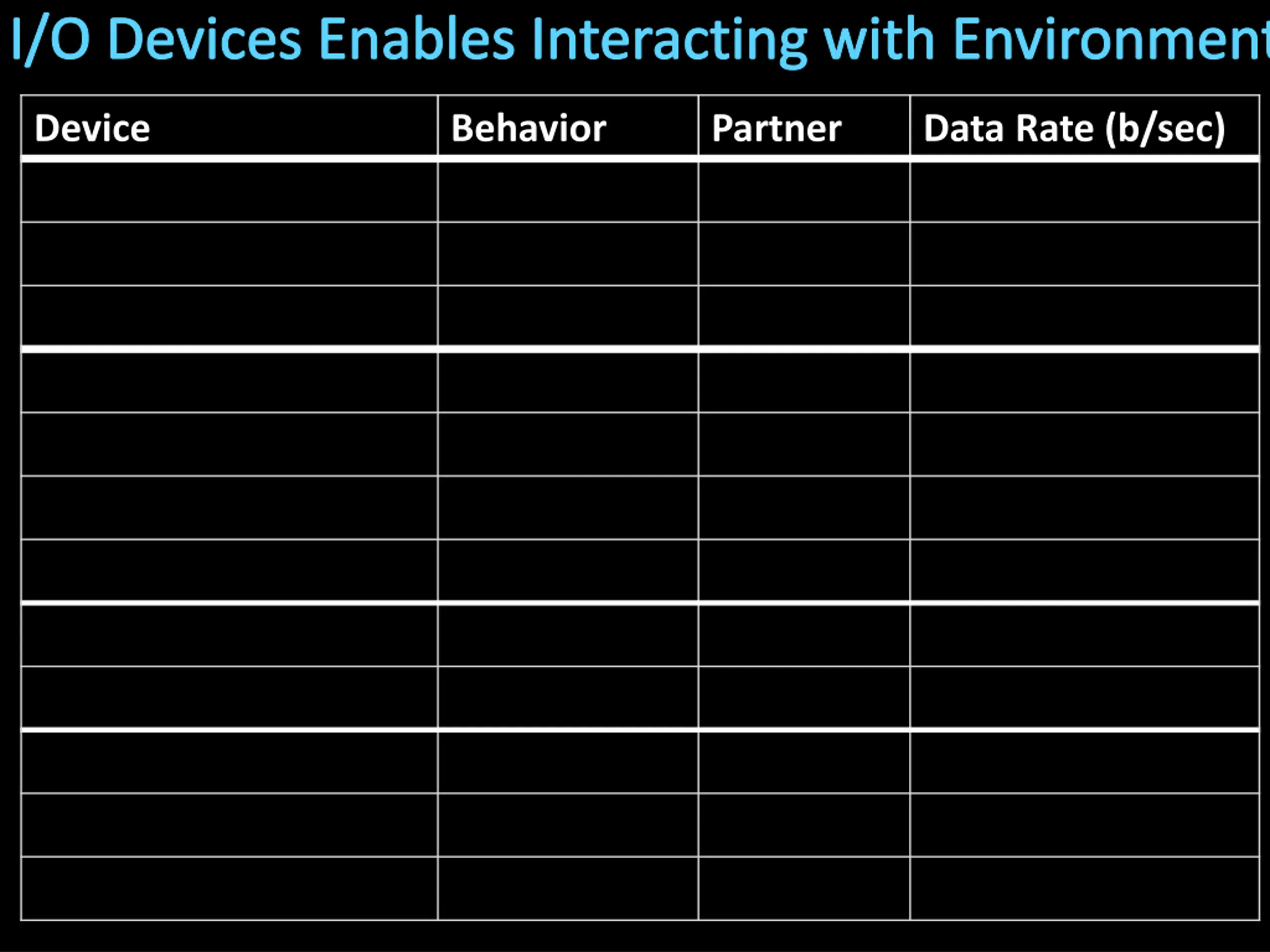 I/O Devices Enables Interacting with Environment Device Behavior Partner Data Rate (b/sec)