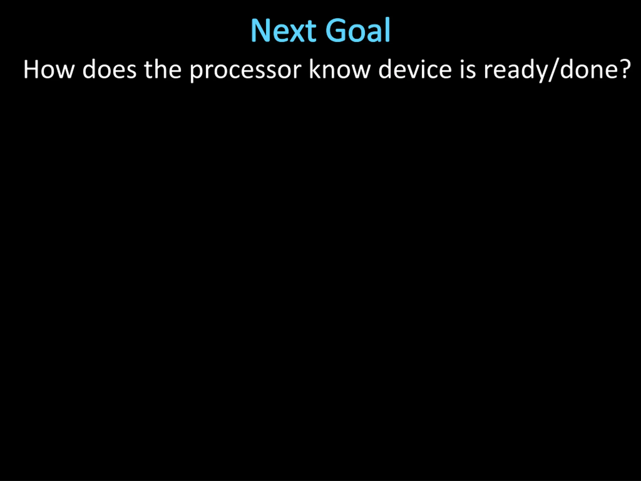 Goals for Today Computer System Organization How does a processor interact with its environment? I/O Overview How to talk to device? Programmed I/O or Memory-Mapped I/O How to get events? Polling or Interrupts How to transfer lots of data? Direct Memory Access (DMA)