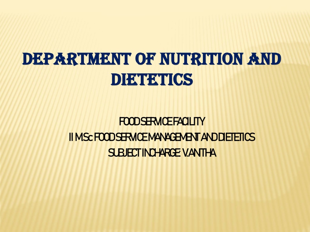 DEPARTMENT OF NUTRITION AND DEPARTMENT OF NUTRITION AND DIETETICS DIETETICS FOOD SE RVIC E F A C IL ITY II M .Sc FOOD SE R VIC E M A N A G E M E N T A N D D IE TE TIC S SU B JE C T IN C H A RG E : V .A N ITH A