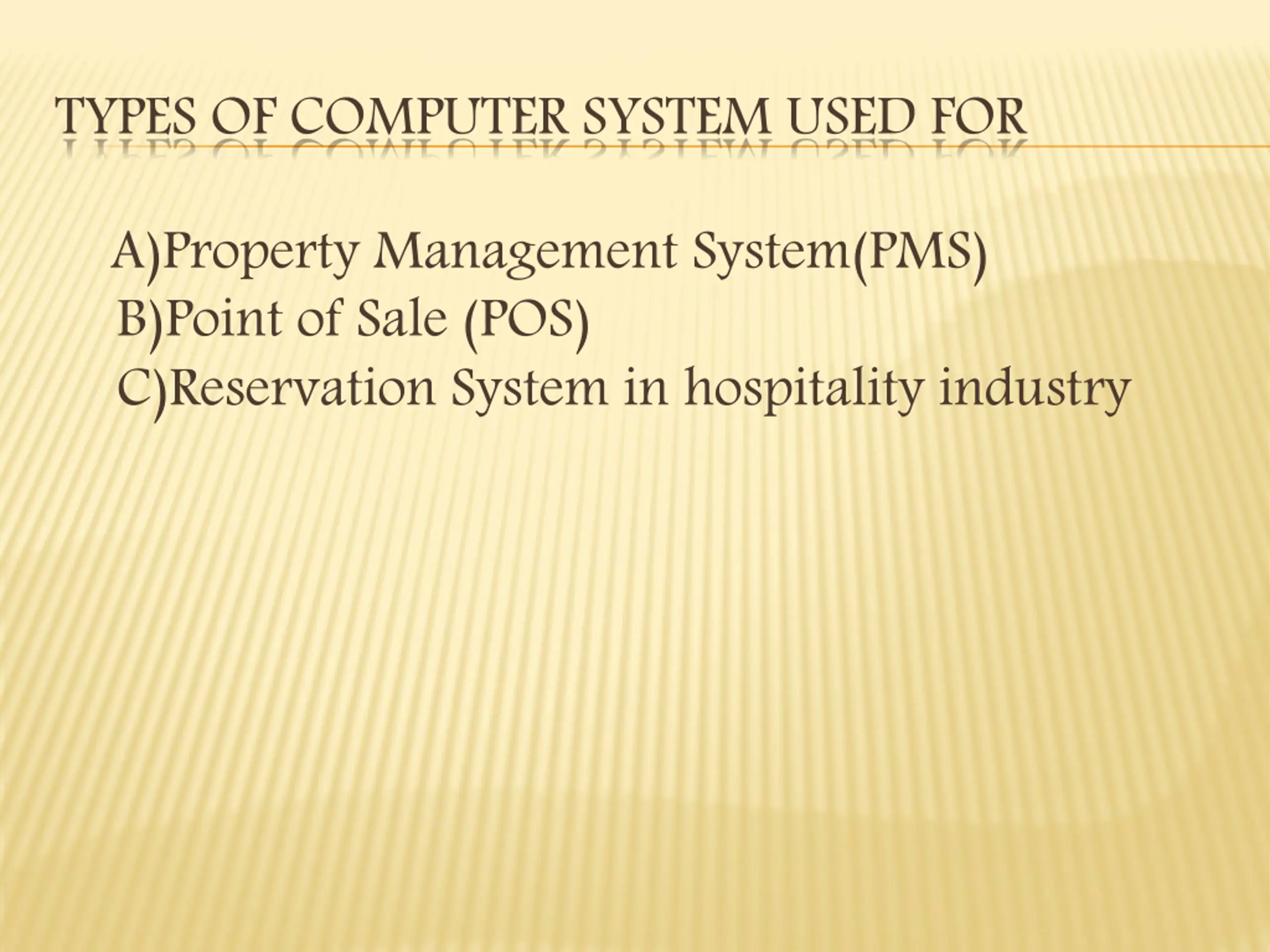 TYPES OF COMPUTER SYSTEM USED FOR A)Property Management System(PMS) B)Point of Sale (POS) C)Reservation System in hospitality industry