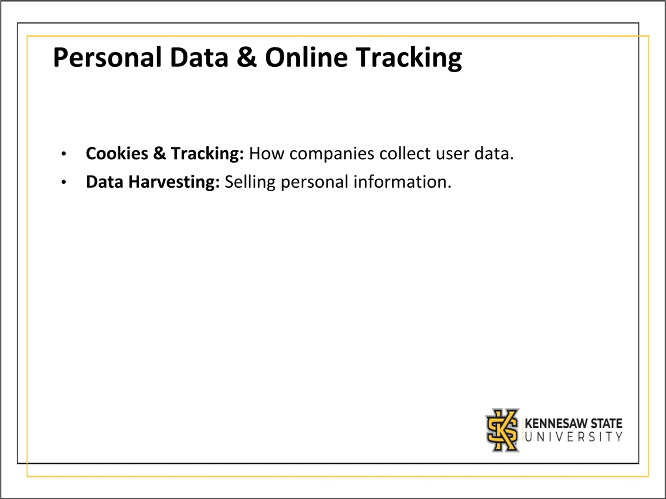 Personal Data & Online Tracking Cookies & Tracking: How companies collect user data. Data Harvesting: Selling personal information.