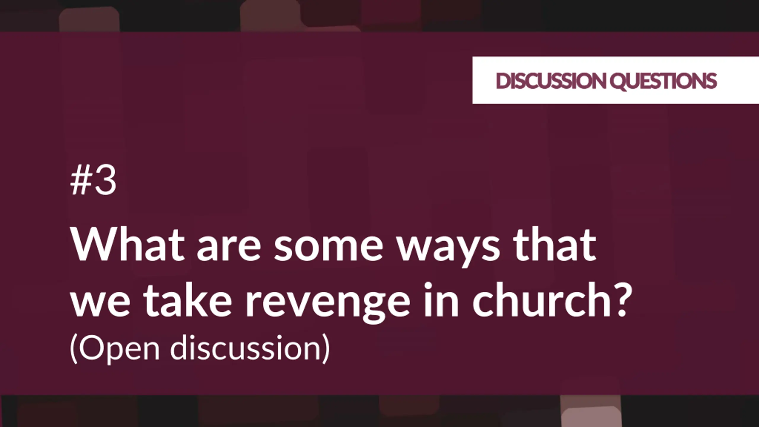 DISCUSSION QUESTIONS DISCUSSION QUESTIONS #3 What are some ways that we take revenge in church? (Open discussion)