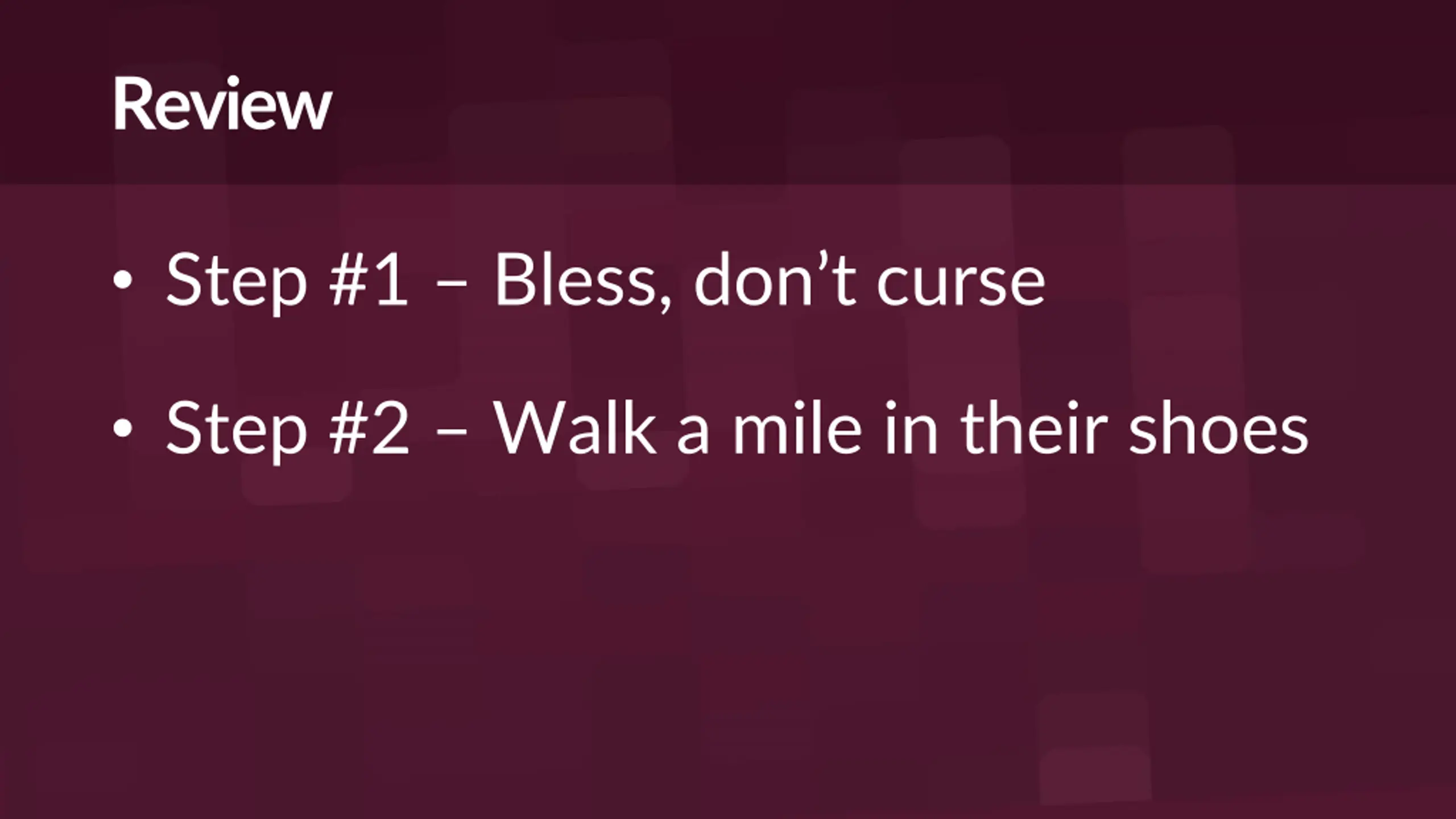 Review Step #1 Bless, don t curse Step #2 Walk a mile in their shoes
