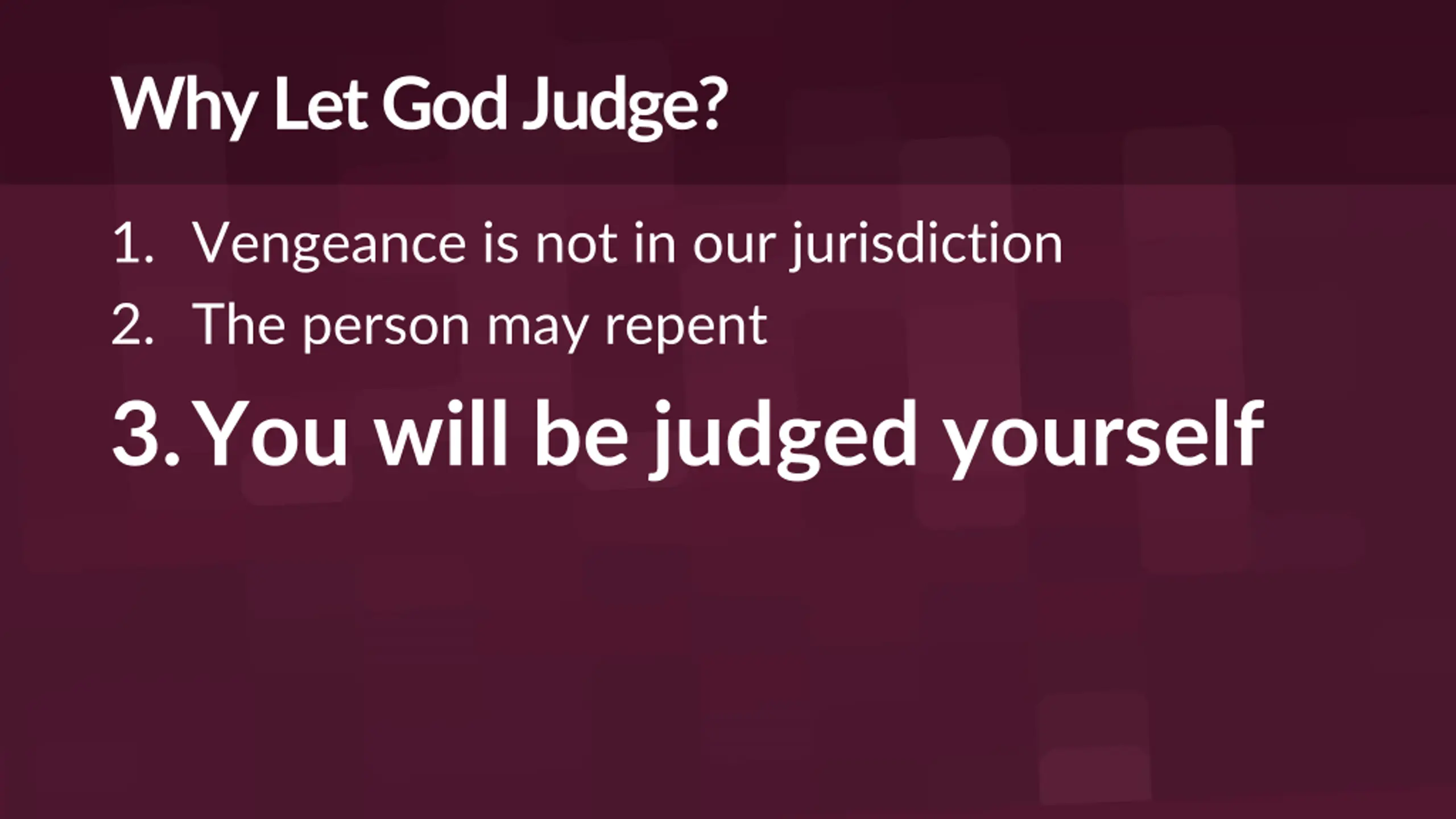 Why Let God Judge? 1. Vengeance is not in our jurisdiction 2. The person may repent 3.You will be judged yourself