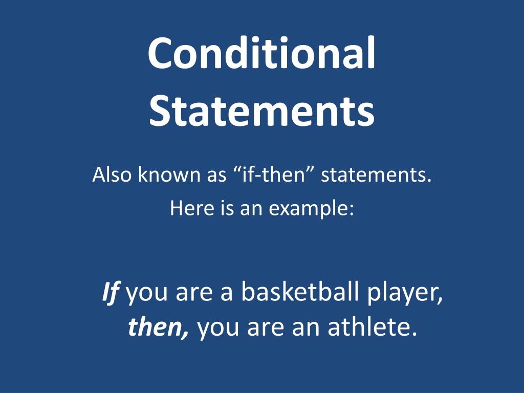 Conditional Statements Also known as if-then statements. Here is an example: If you are a basketball player, then, you are an athlete.
