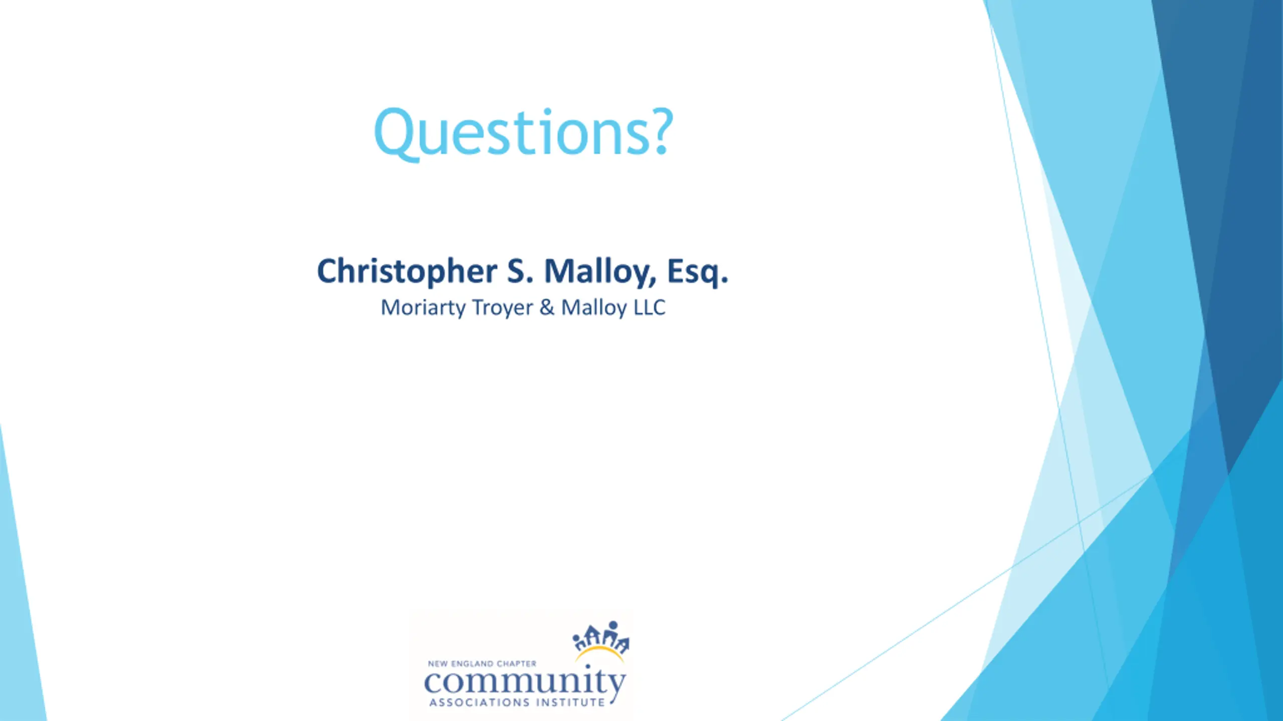 Questions? Christopher S. Malloy, Esq. Moriarty Troyer & Malloy LLC