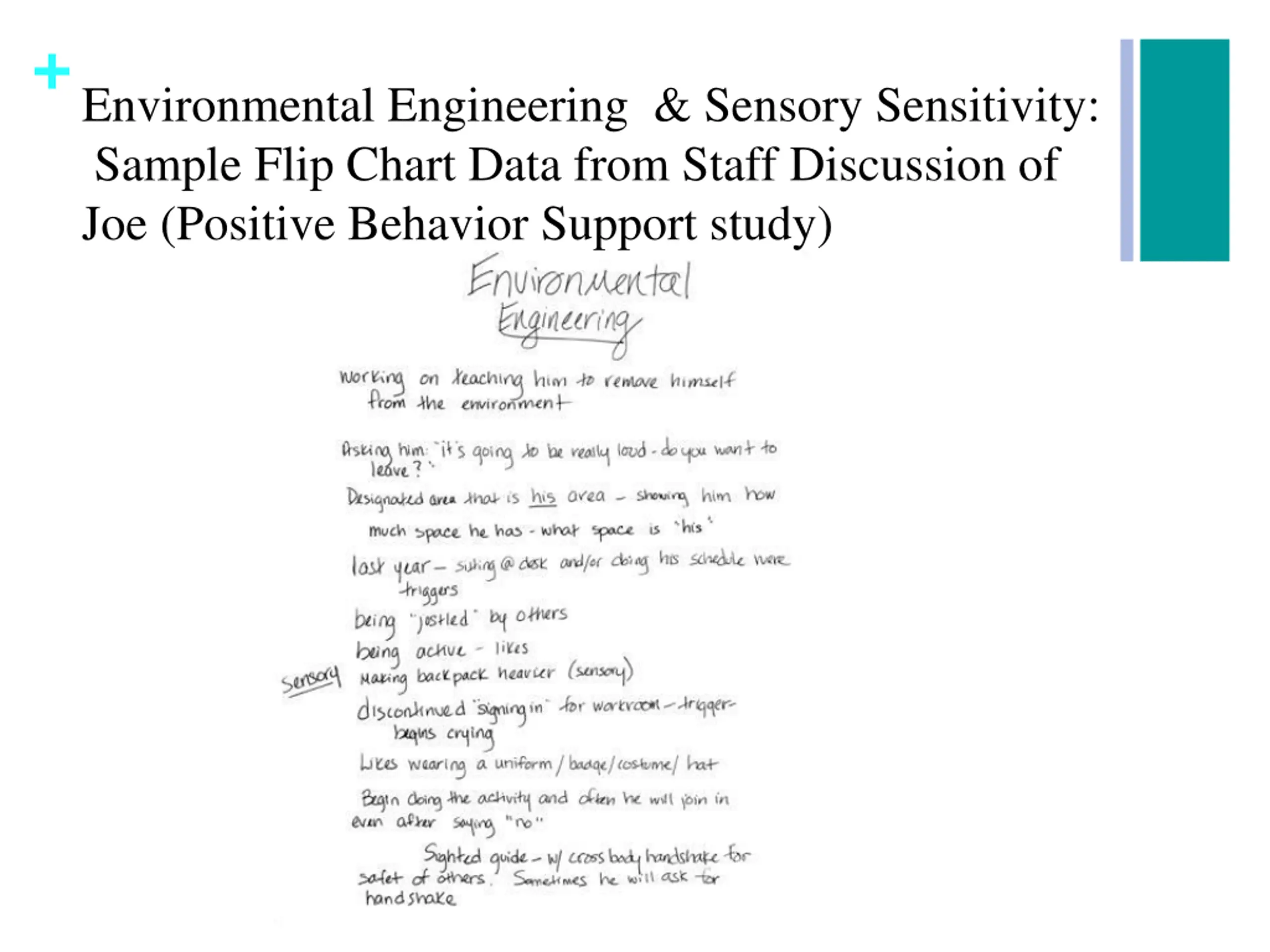 +Environmental Engineering & Sensory Sensitivity: Sample Flip Chart Data from Staff Discussion of Joe (Positive Behavior Support study)