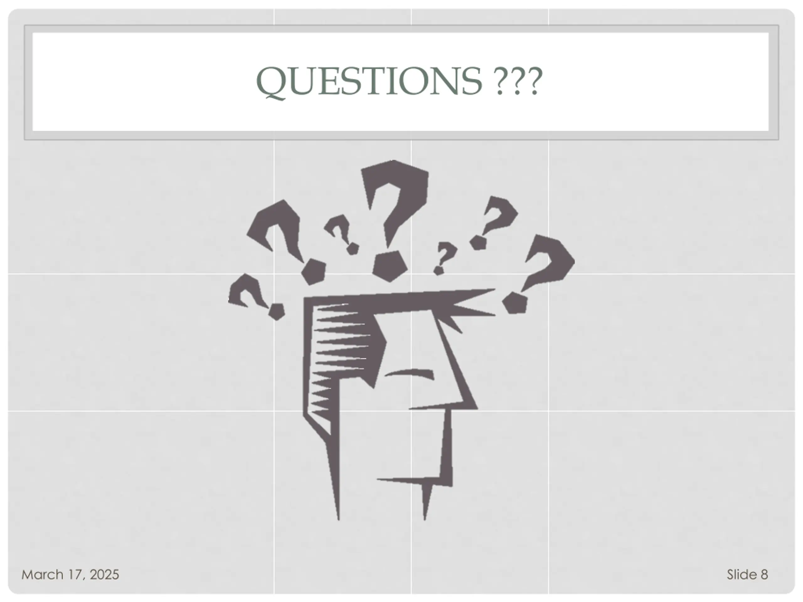 1910.146 (d ) PRCS PROGRAM 12. Develop & implement procedures (such as closing off a permit space & canceling the permit) necessary for concluding the entry after operation are completed 13. Review entry operations when the employer has reason to believe that measures taken under the PRCS program may not protect employees and revise program to correct deficiencies before subsequent entries are made 14. Review the program within 1 year after each entry and revise as necessary to ensure participating employees are protected from PRCS hazards March 17, 2025 Slide 7