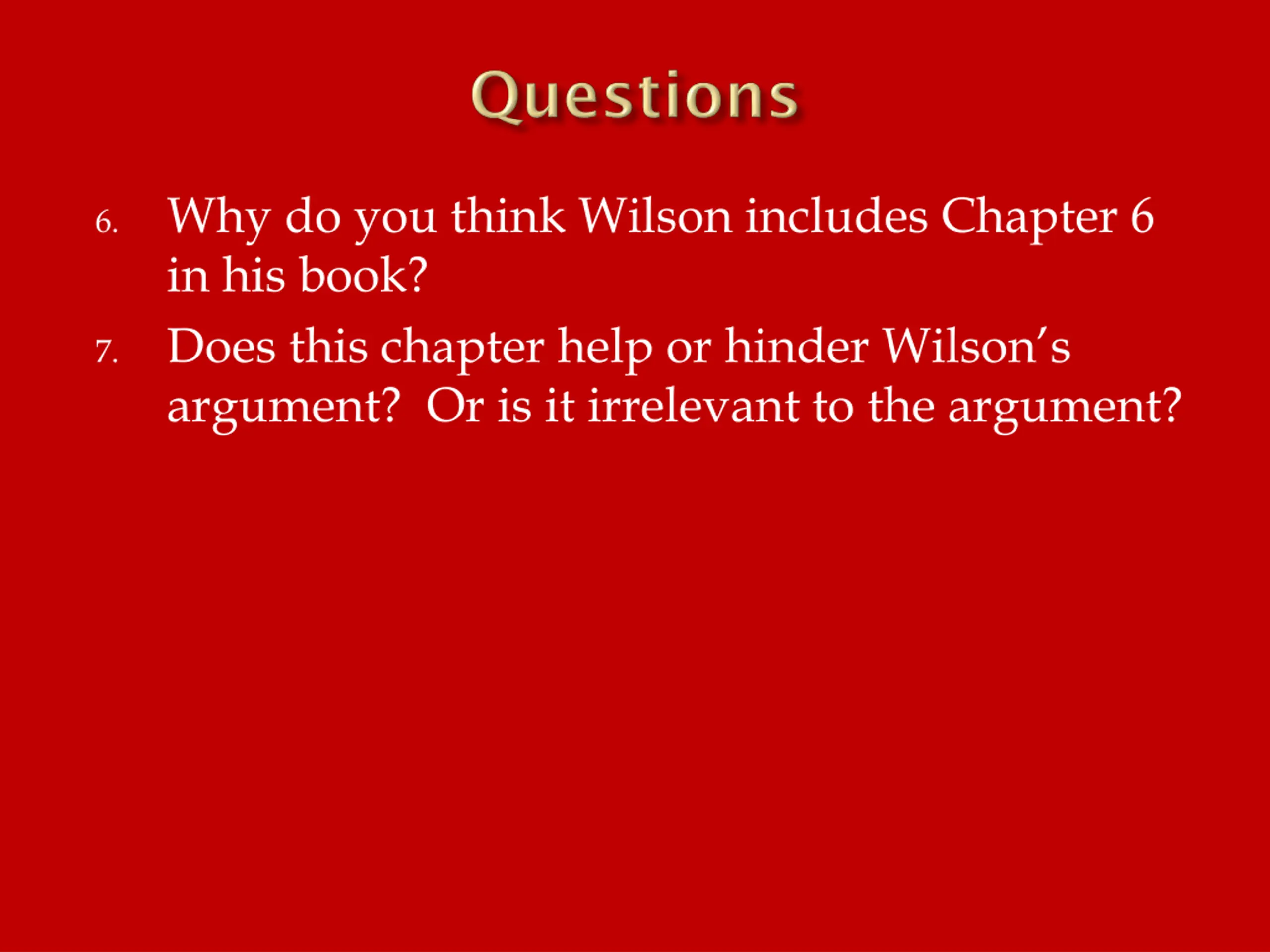 Why do you think Wilson includes Chapter 6 in his book? Does this chapter help or hinder Wilson s argument? Or is it irrelevant to the argument? 6. 7.