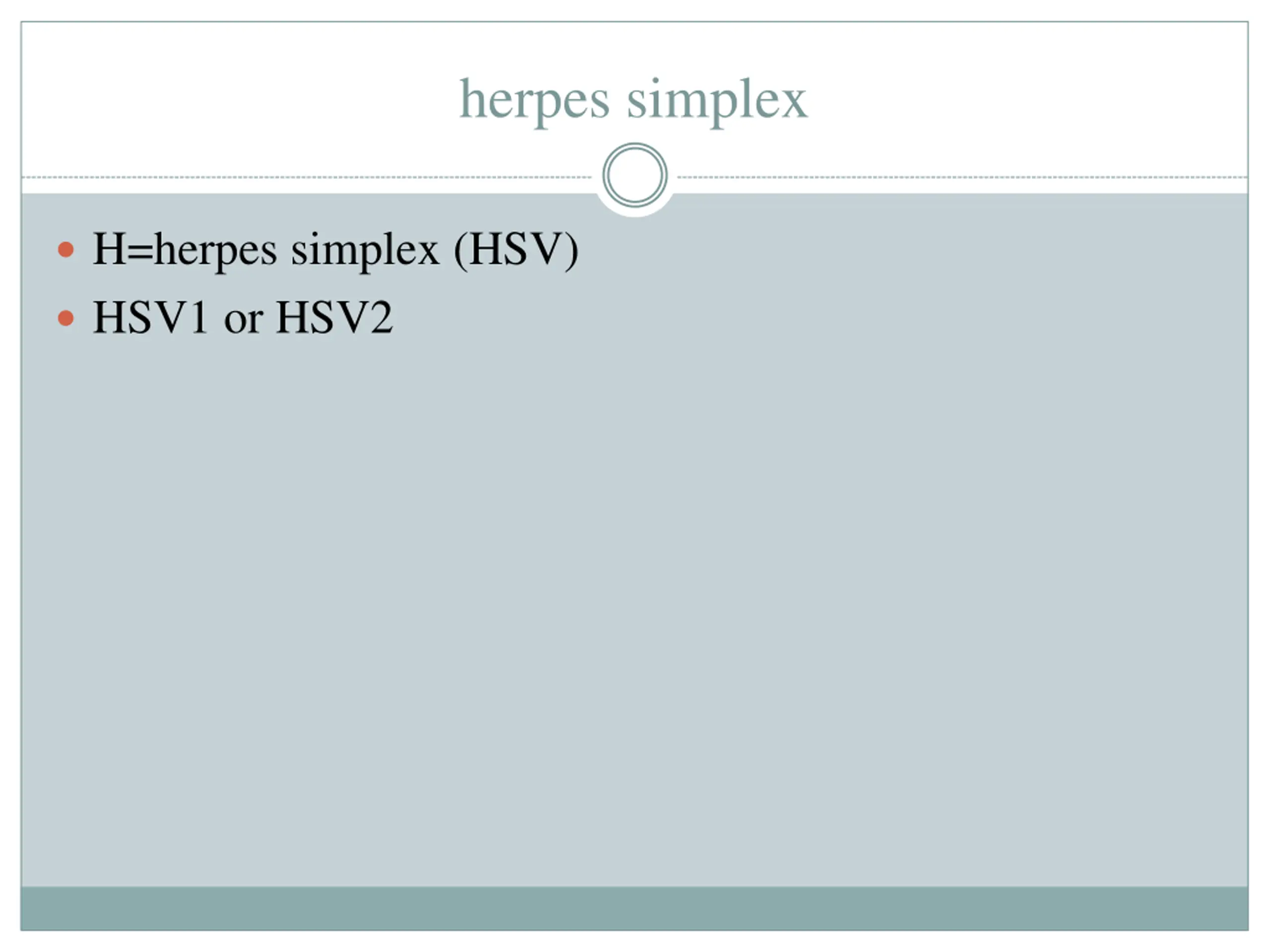herpes simplex H=herpes simplex (HSV) HSV1 or HSV2