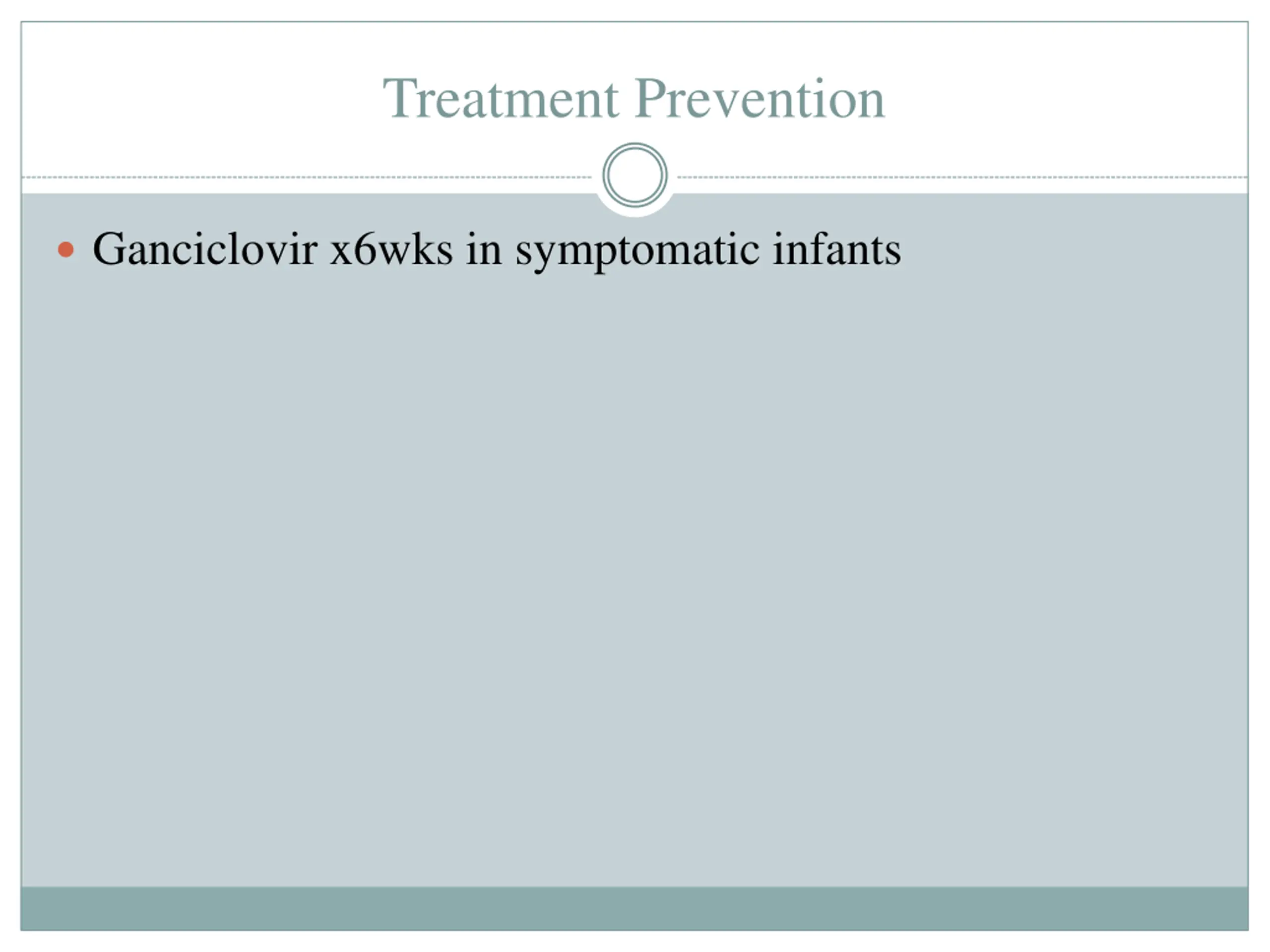 Treatment Prevention Ganciclovir x6wks in symptomatic infants