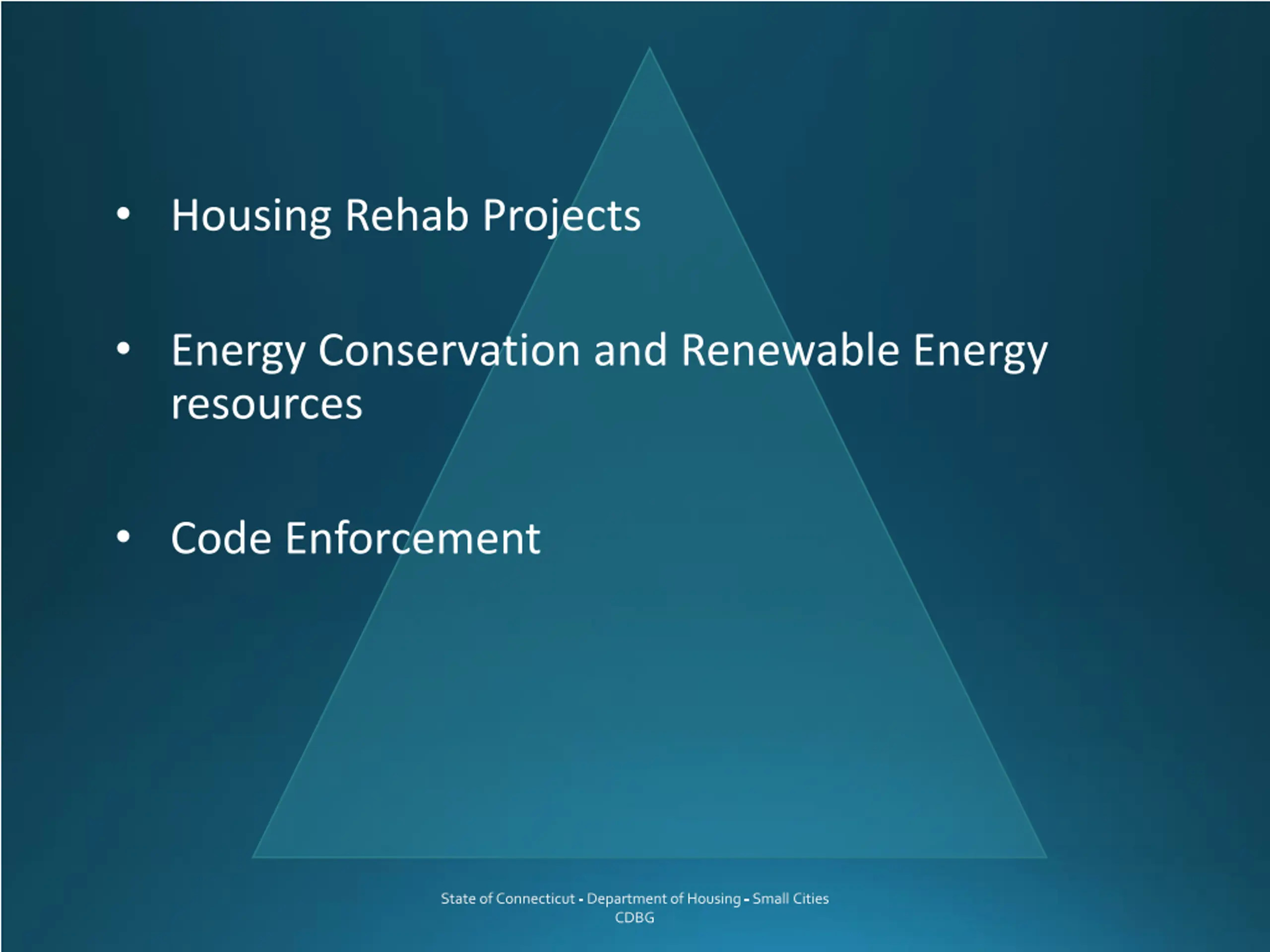Housing Rehab Projects Energy Conservation and Renewable Energy resources Code Enforcement State of Connecticut - Department of Housing - Small Cities CDBG