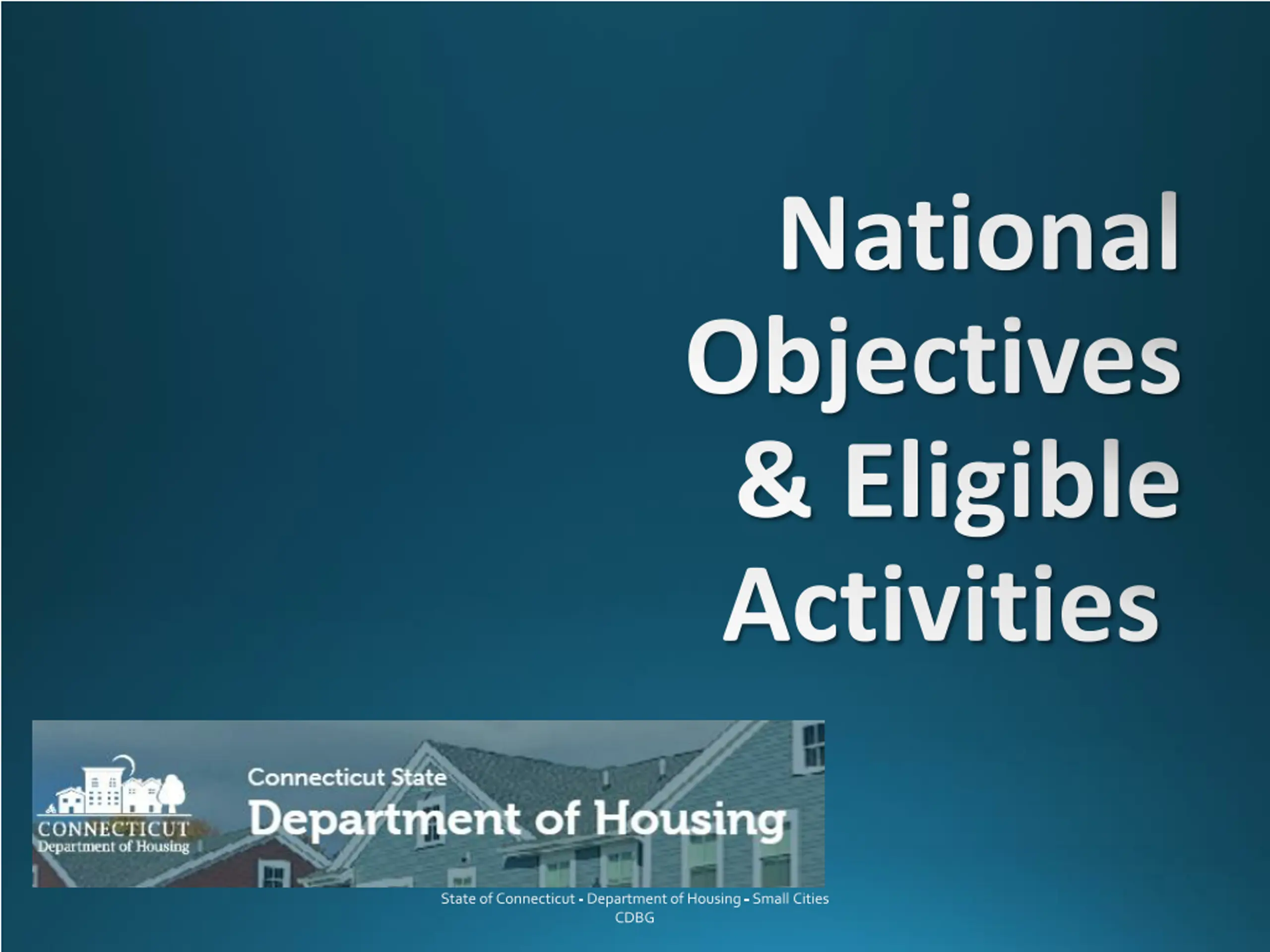 National Objectives & Eligible Activities State of Connecticut - Department of Housing - Small Cities CDBG